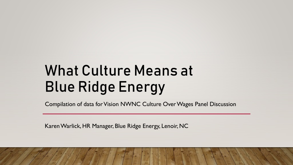 What Culture Means at Blue Ridge Energy Compilation of data for Vision NWNC Culture Over Wages Panel Discussion Karen Warlick, HR Manager, Blue Ridge Energy, Lenoir, NC