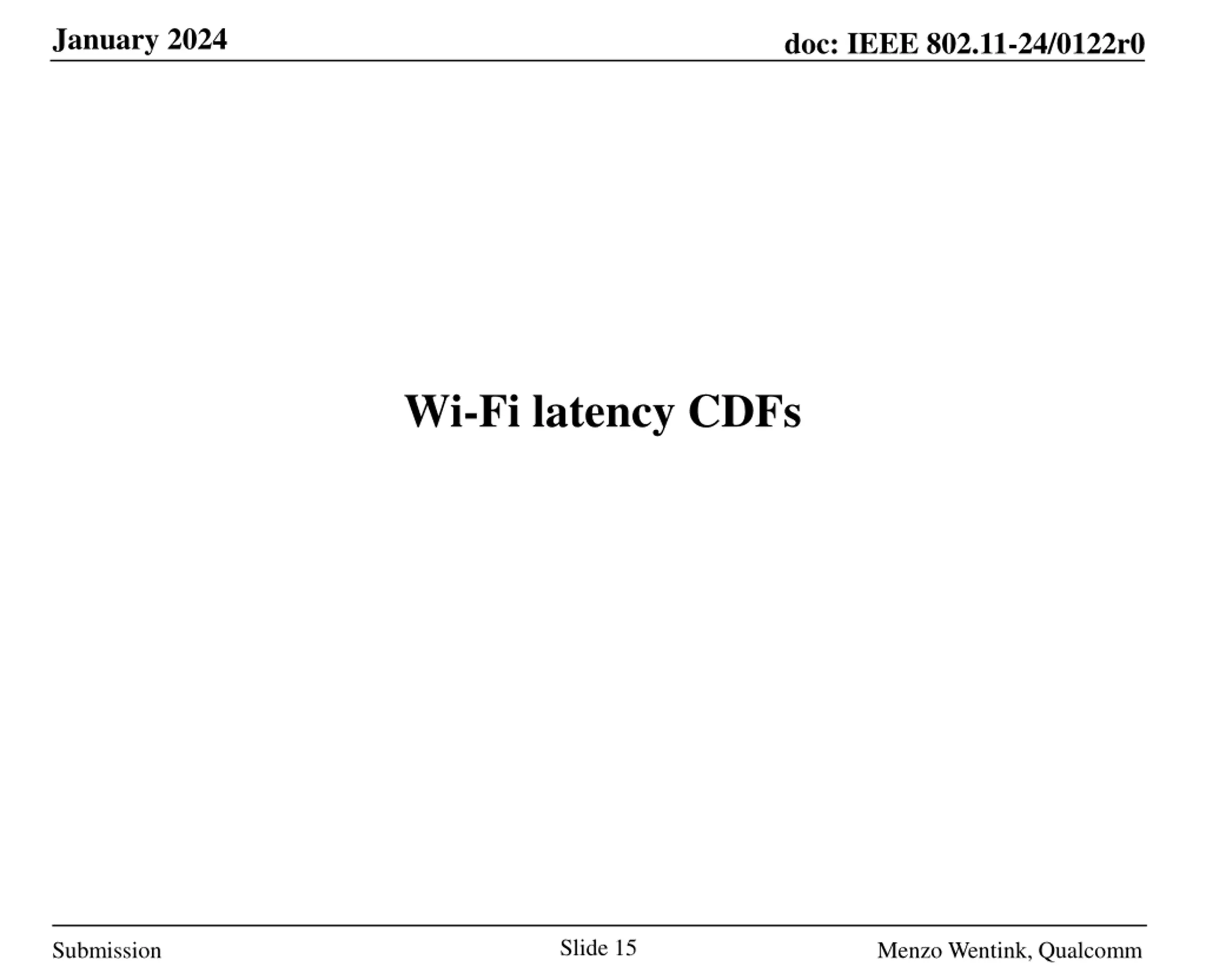 January 2024 doc: IEEE 802.11-24/0122r0 Wi-Fi latency CDFs Slide 15 Submission Menzo Wentink, Qualcomm
