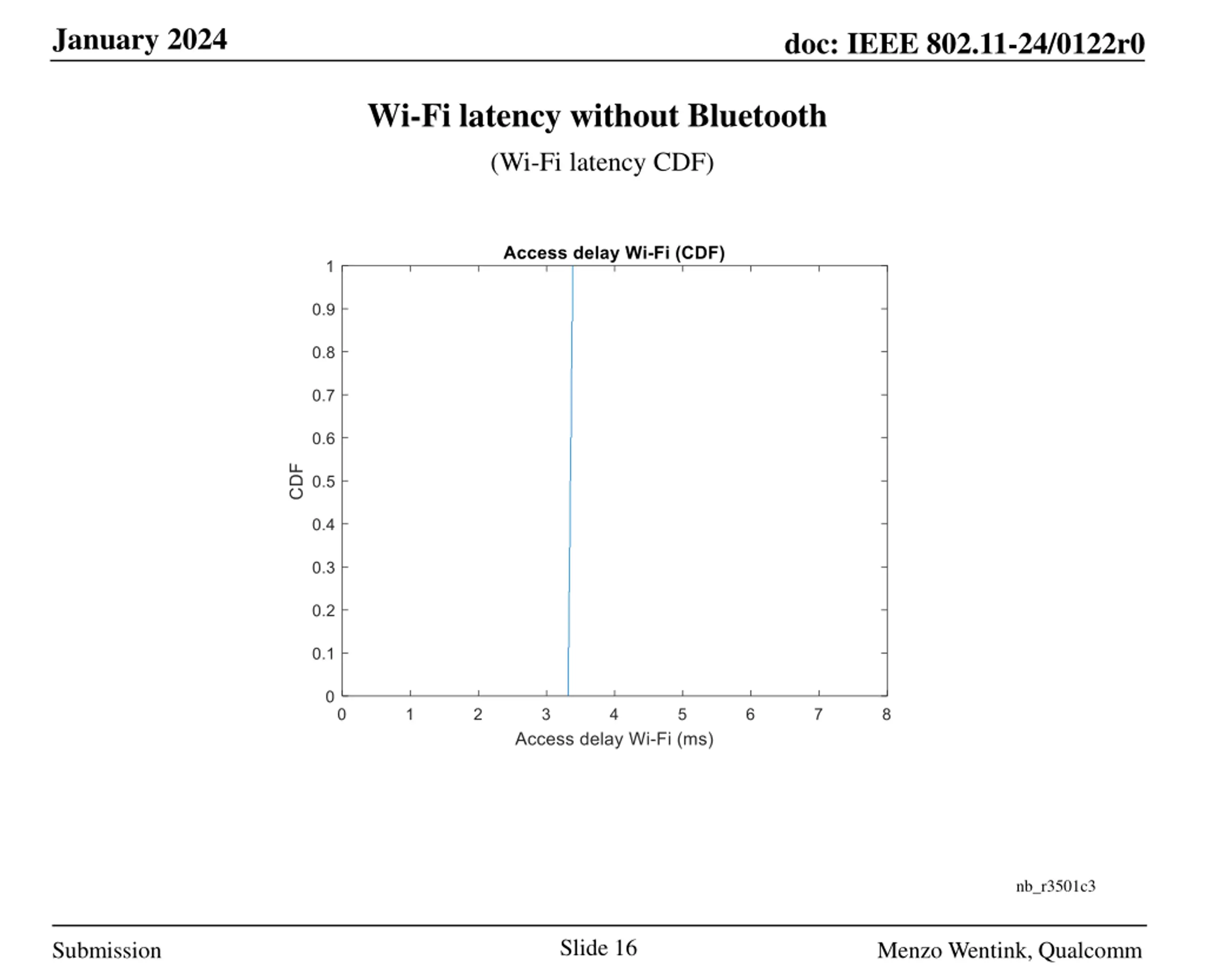 January 2024 doc: IEEE 802.11-24/0122r0 Wi-Fi latency without Bluetooth (Wi-Fi latency CDF) nb_r3501c3 Slide 16 Submission Menzo Wentink, Qualcomm