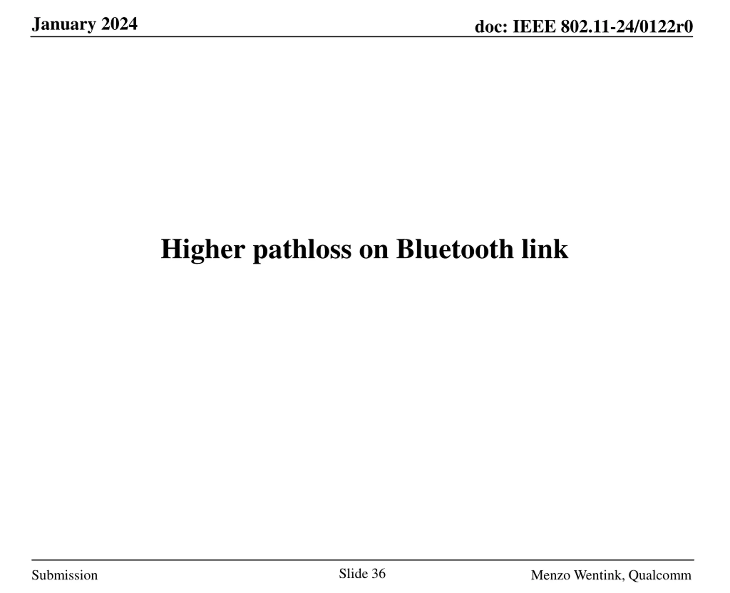 January 2024 doc: IEEE 802.11-24/0122r0 Higher pathloss on Bluetooth link Slide 36 Submission Menzo Wentink, Qualcomm