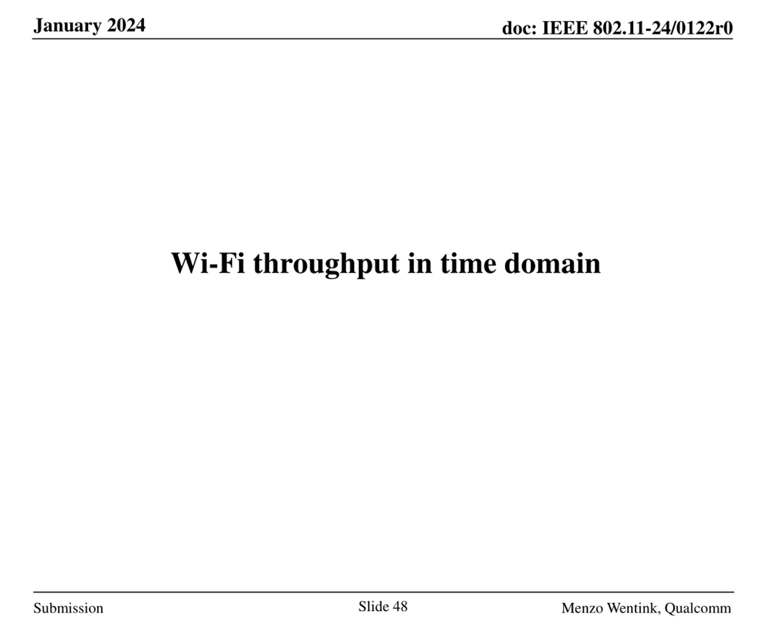 January 2024 doc: IEEE 802.11-24/0122r0 Wi-Fi throughput in time domain Slide 48 Submission Menzo Wentink, Qualcomm