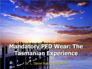 Emergencies The captain s pre-sail briefing includes providing USCG approved lifejackets for the intended boating. It should be tried on, fasteners adjusted and check for proper size. It should be worn, but must be readily accessible. Wearing life jackets can reduce the major cause of boating fatalities falling overboard and drowning. Falling overboard contributes to death from cold water immersion leads to hypothermia since the body loses heat 25 time faster in water than in air. 27 Come for the boating education Stay for the friends