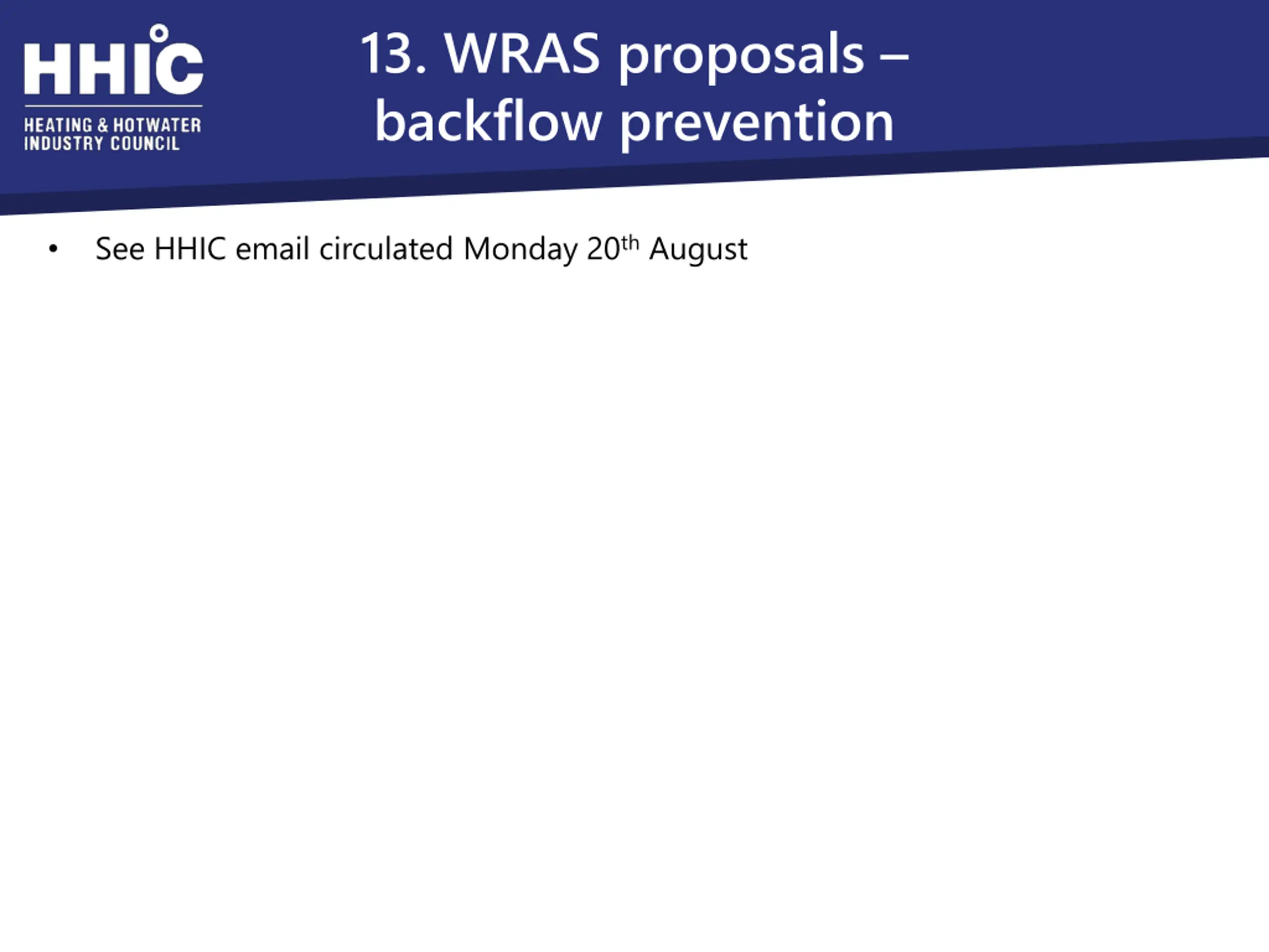 13. WRAS proposals backflow prevention See HHIC email circulated Monday 20th August