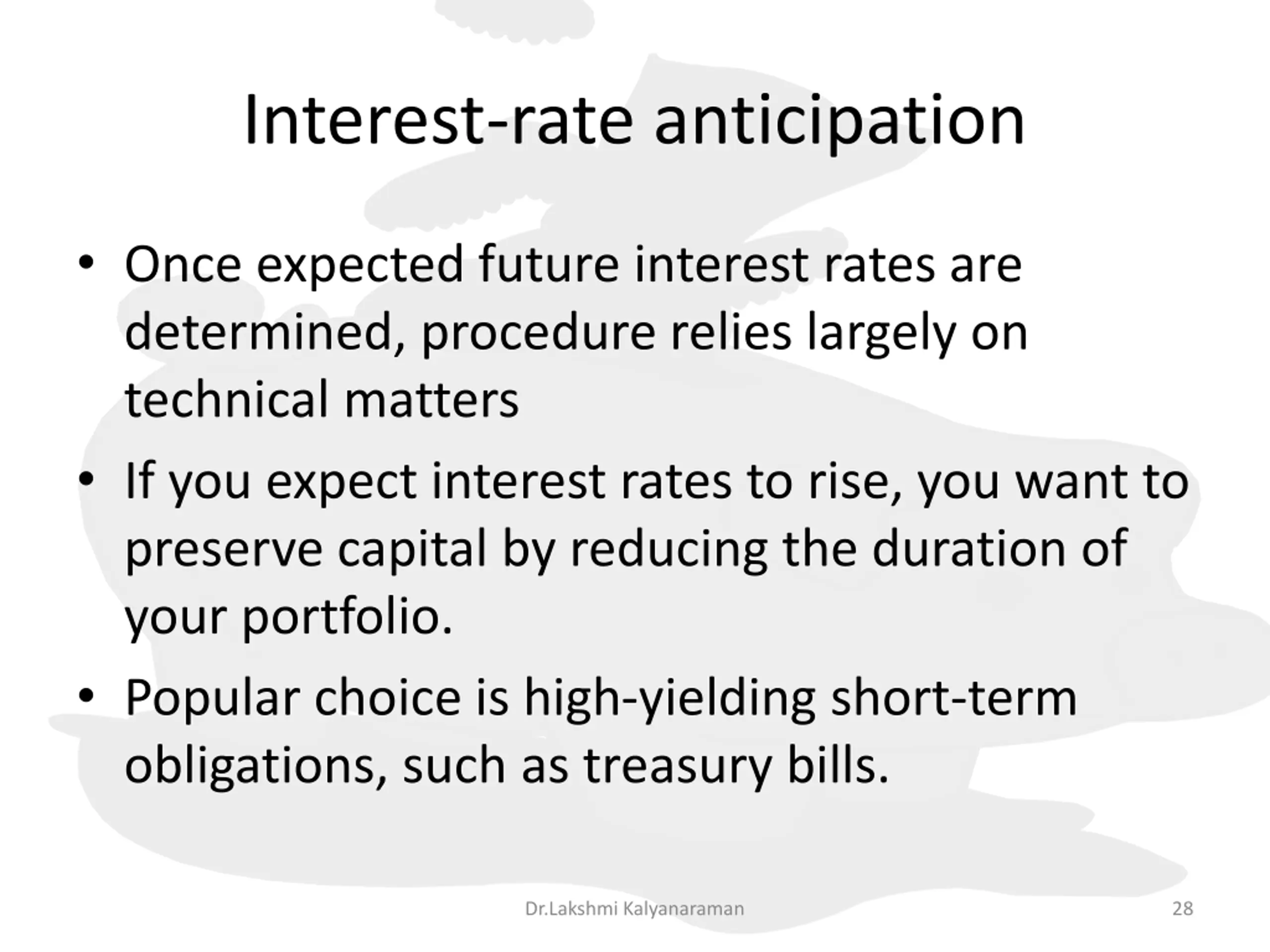 Interest-rate anticipation At the same time, portfolio is purposely exposed to greater price volatility that could work against the portfolio if an unexpected rise in yields occurs. Dr.Lakshmi Kalyanaraman 27