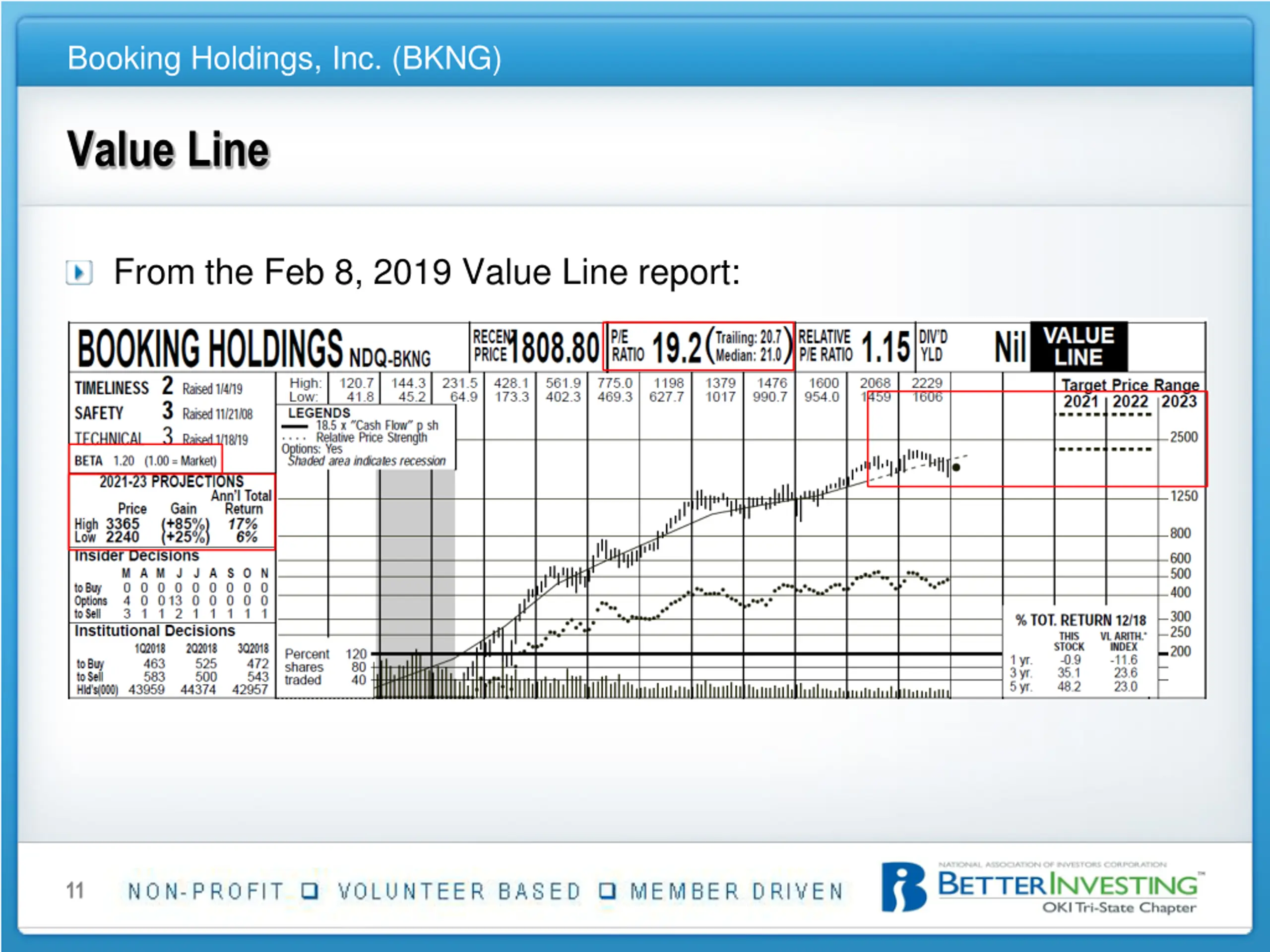 Booking Holdings, Inc. (BKNG) Value Line From the Feb 8, 2019 Value Line report: 11