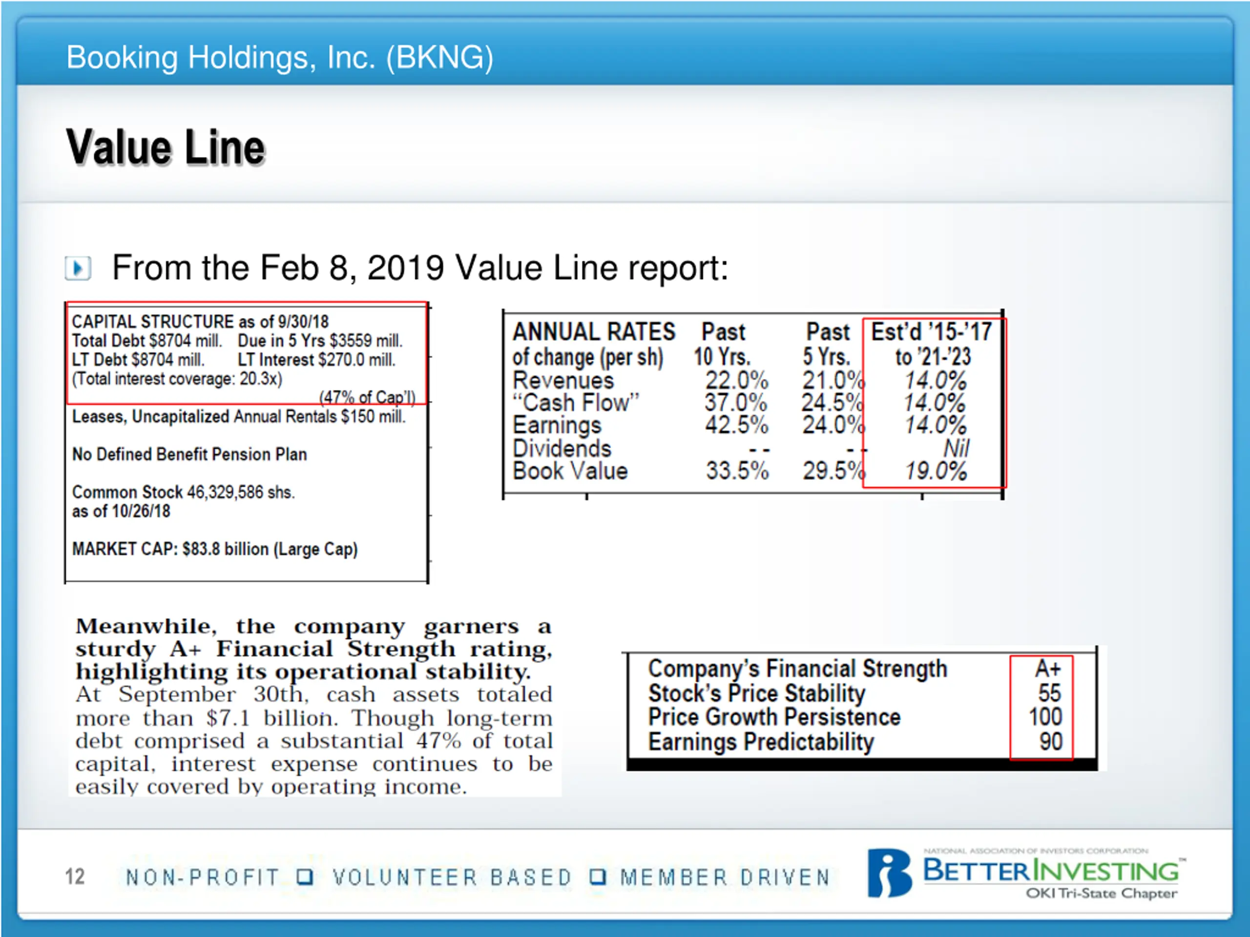 Booking Holdings, Inc. (BKNG) Value Line From the Feb 8, 2019 Value Line report: 12