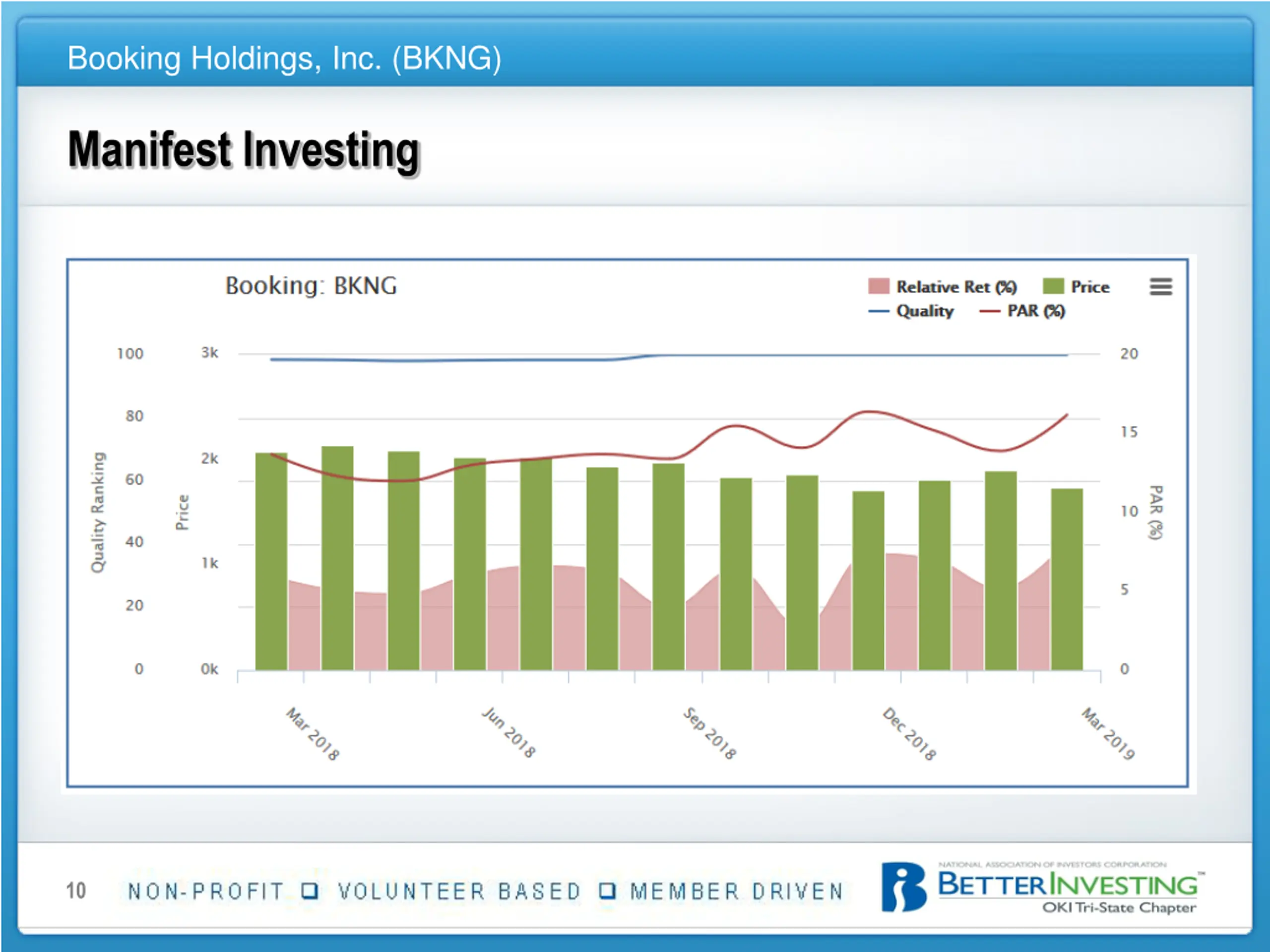 Booking Holdings, Inc. (BKNG) April 20, 2019 / Cincinnati Model Investment Club Richard Alden Member of BetterInvesting.org / dedicated to Investment Education Presiding Partner, Cincinnati Model Investment Club