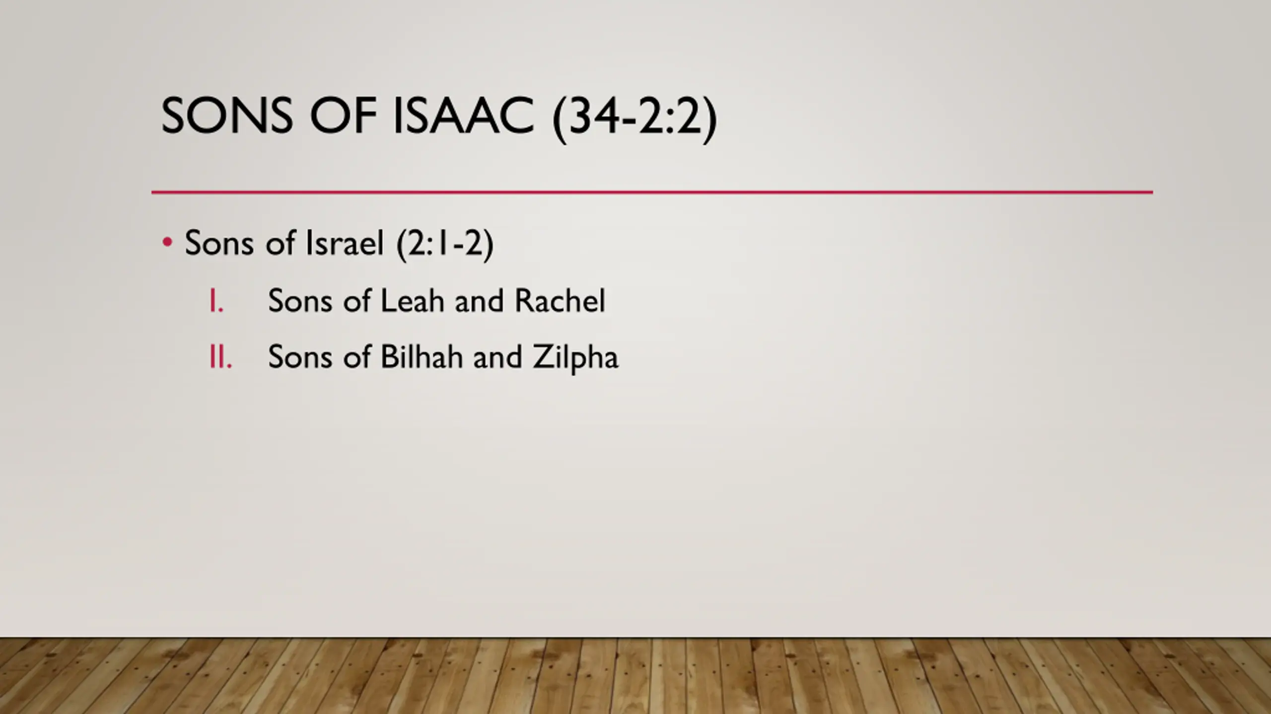 SONS OF ISAAC (34-2:2) Sons of Israel (2:1-2) I. Sons of Leah and Rachel II. Sons of Bilhah and Zilpha