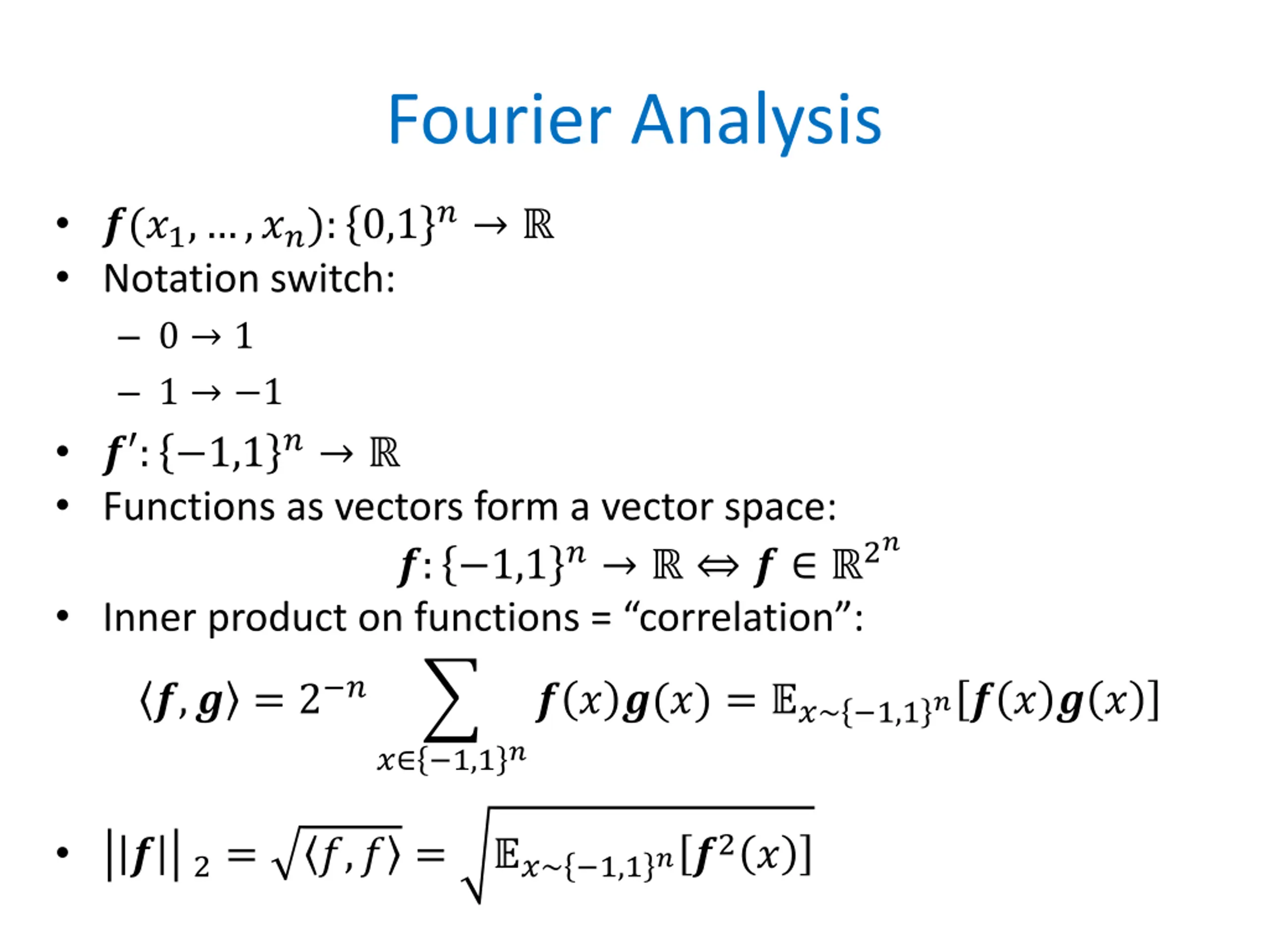Fourier Analysis ?(?1, ,??): 0,1? Notation switch: 0 1 1 1 ? : 1,1? Functions as vectors form a vector space: ?: 1,1? ? 2? Inner product on functions = correlation : ?,? = 2 ? ? ? ?(?) = ?? 1,1? ? ? ? ? ? 1,1? ?? 1,1? ?2? ? 2= ?,? =