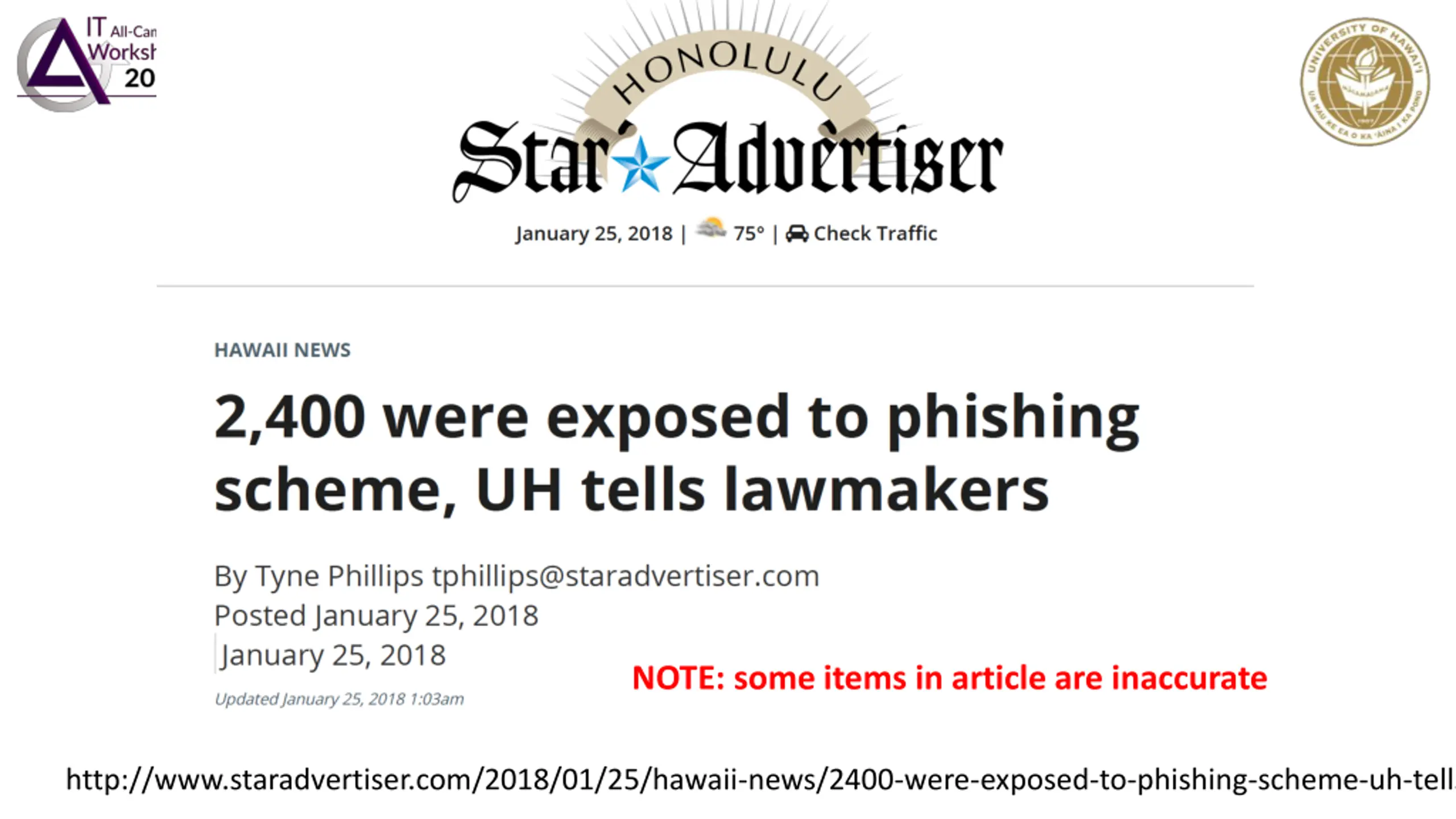 NOTE: some items in article are inaccurate http://www.staradvertiser.com/2018/01/25/hawaii-news/2400-were-exposed-to-phishing-scheme-uh-tells-