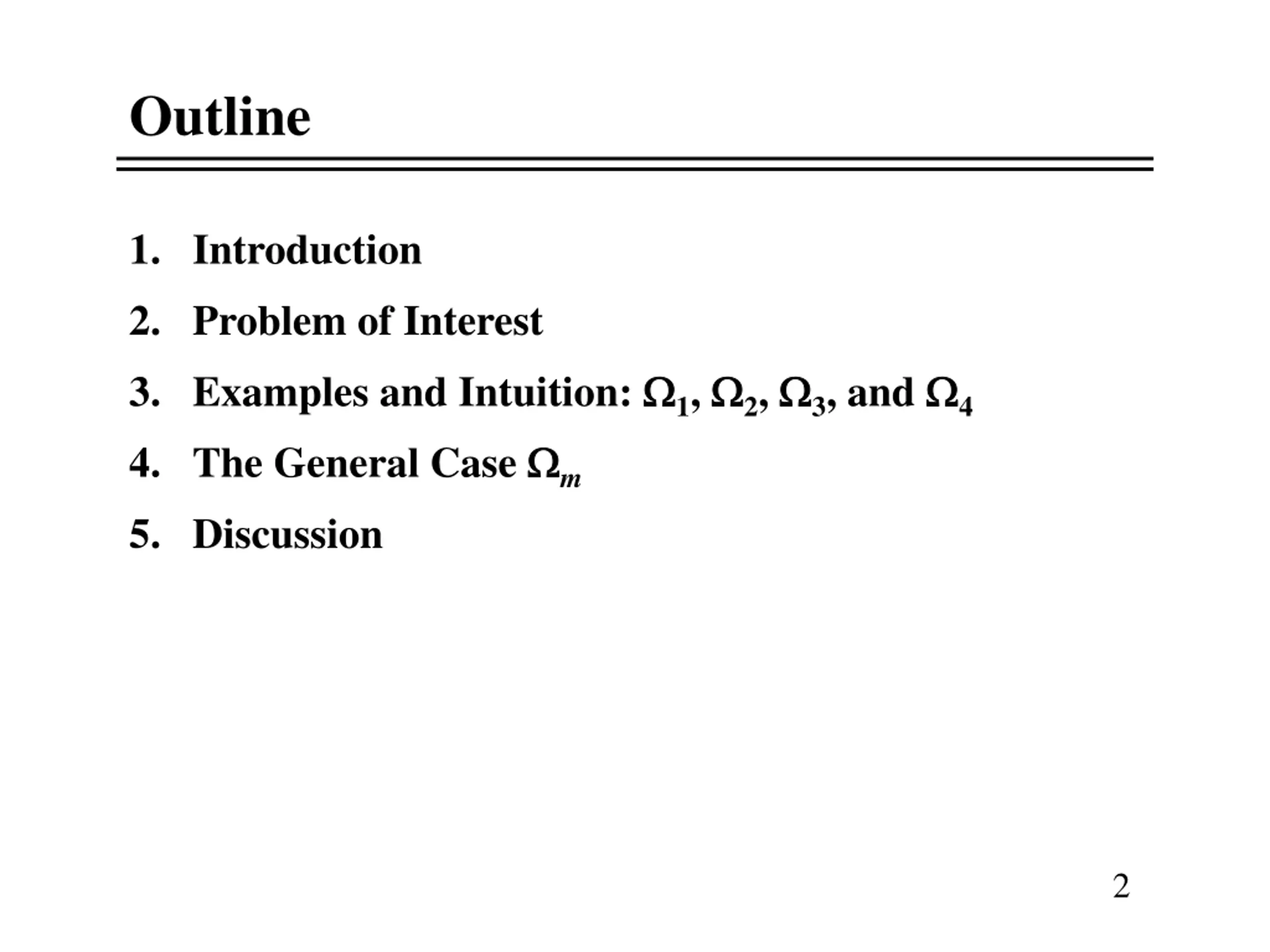 Outline 1. Introduction 2. Problem of Interest 3. Examples and Intuition: 1, 2, 3, and 4 4. The General Case m 5. Discussion 2