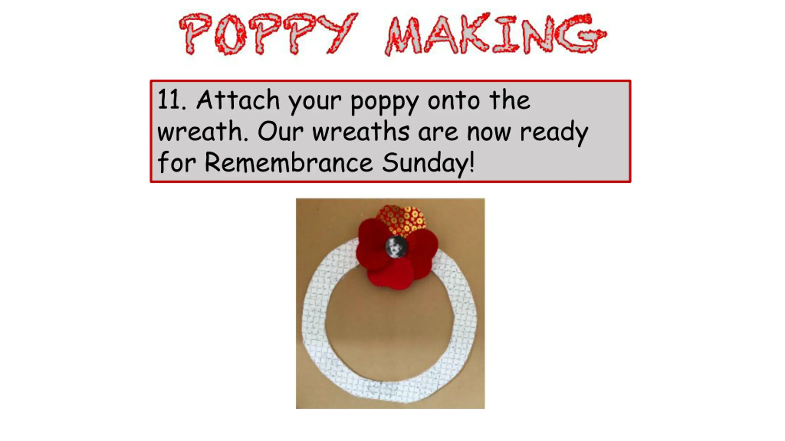11. Attach your poppy onto the wreath. Our wreaths are now ready for Remembrance Sunday!