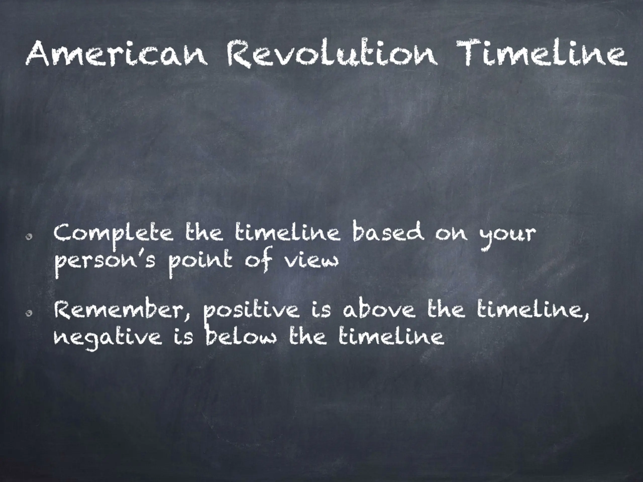 American Revolution Timeline Complete the timeline based on your person s point of view Remember, positive is above the timeline, negative is below the timeline