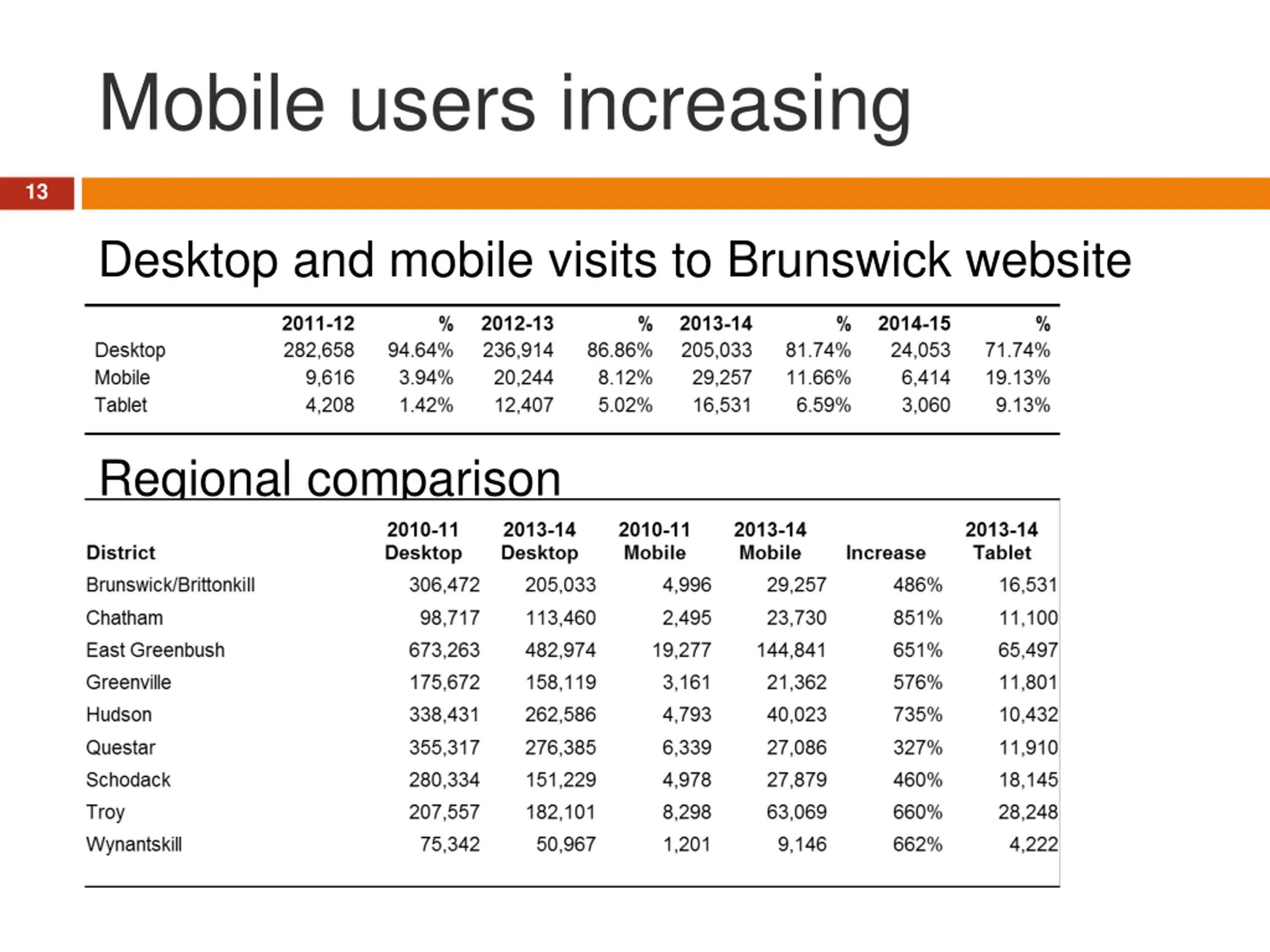 Mobile users increasing 13 Desktop and mobile visits to Brunswick website Regional comparison
