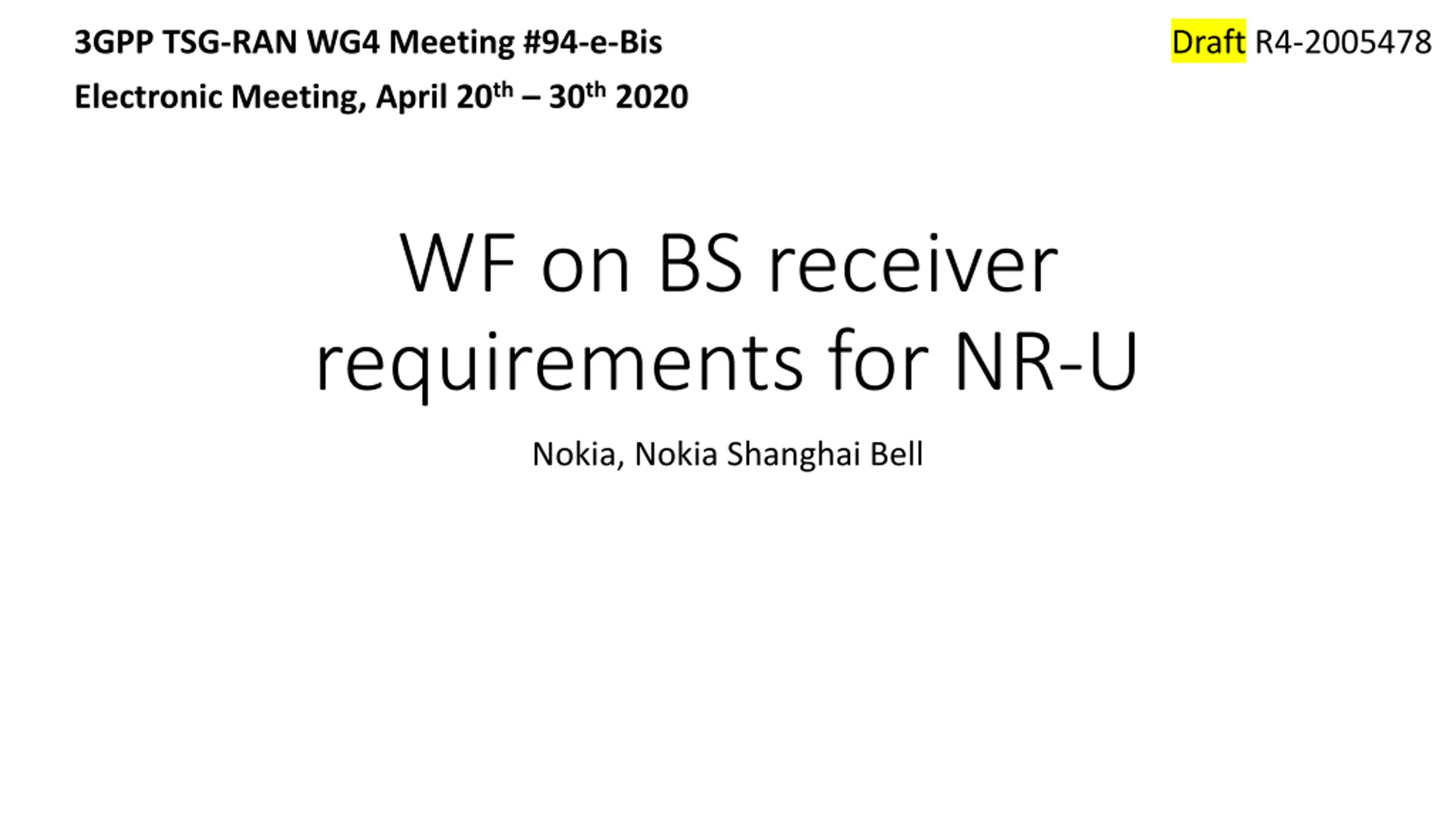 3GPP TSG-RAN WG4 Meeting #94-e-Bis Electronic Meeting, April 20th 30th2020 Draft R4-2005478 WF on BS receiver requirements for NR-U Nokia, Nokia Shanghai Bell