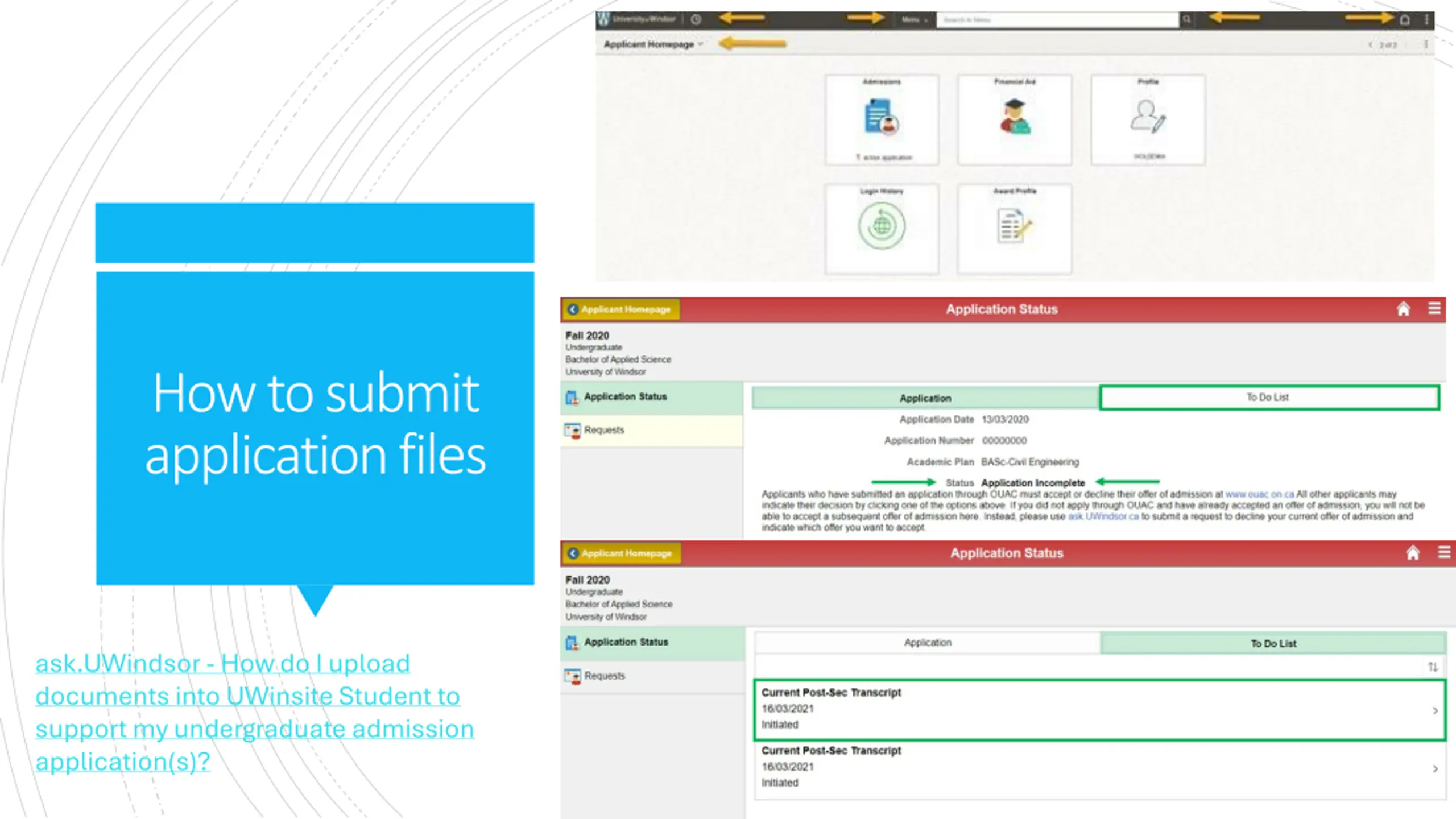How to submit application files ask.UWindsor - How do I upload documents into UWinsite Student to support my undergraduate admission application(s)?