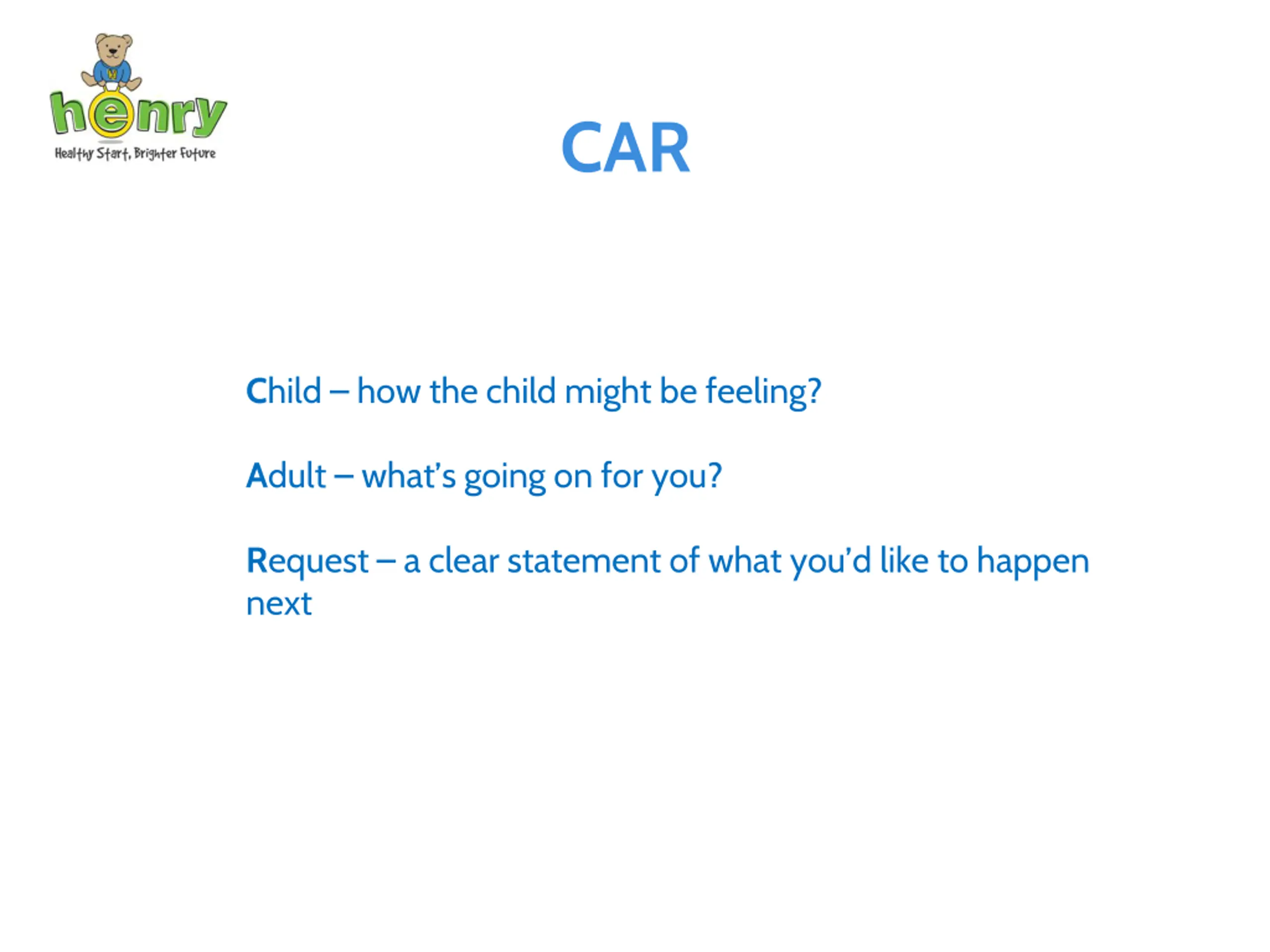 CAR Child how the child might be feeling? Adult what s going on for you? Request a clear statement of what you d like to happen next