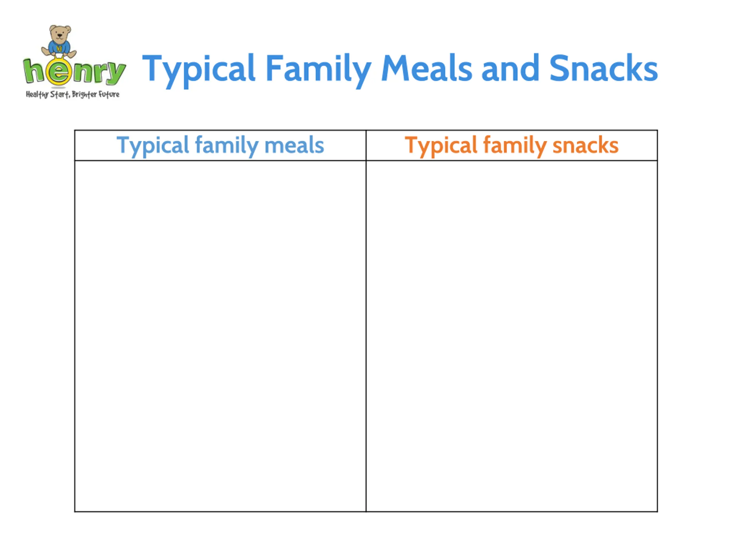 Typical Family Meals and Snacks Typical family meals Typical family snacks