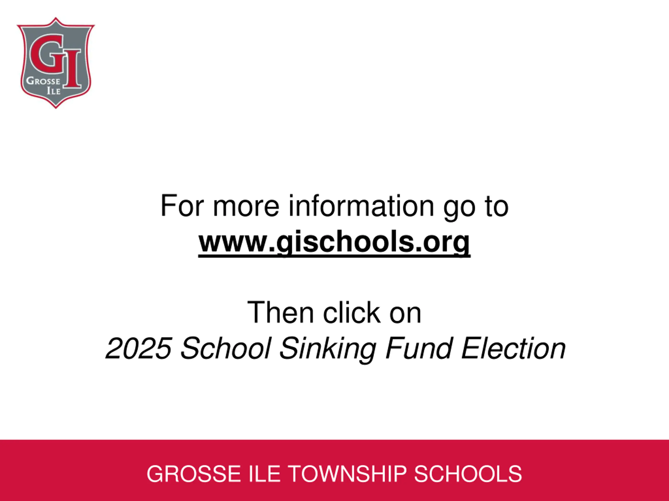 For more information go to www.gischools.org Then click on 2025 School Sinking Fund Election GROSSE ILE TOWNSHIP SCHOOLS