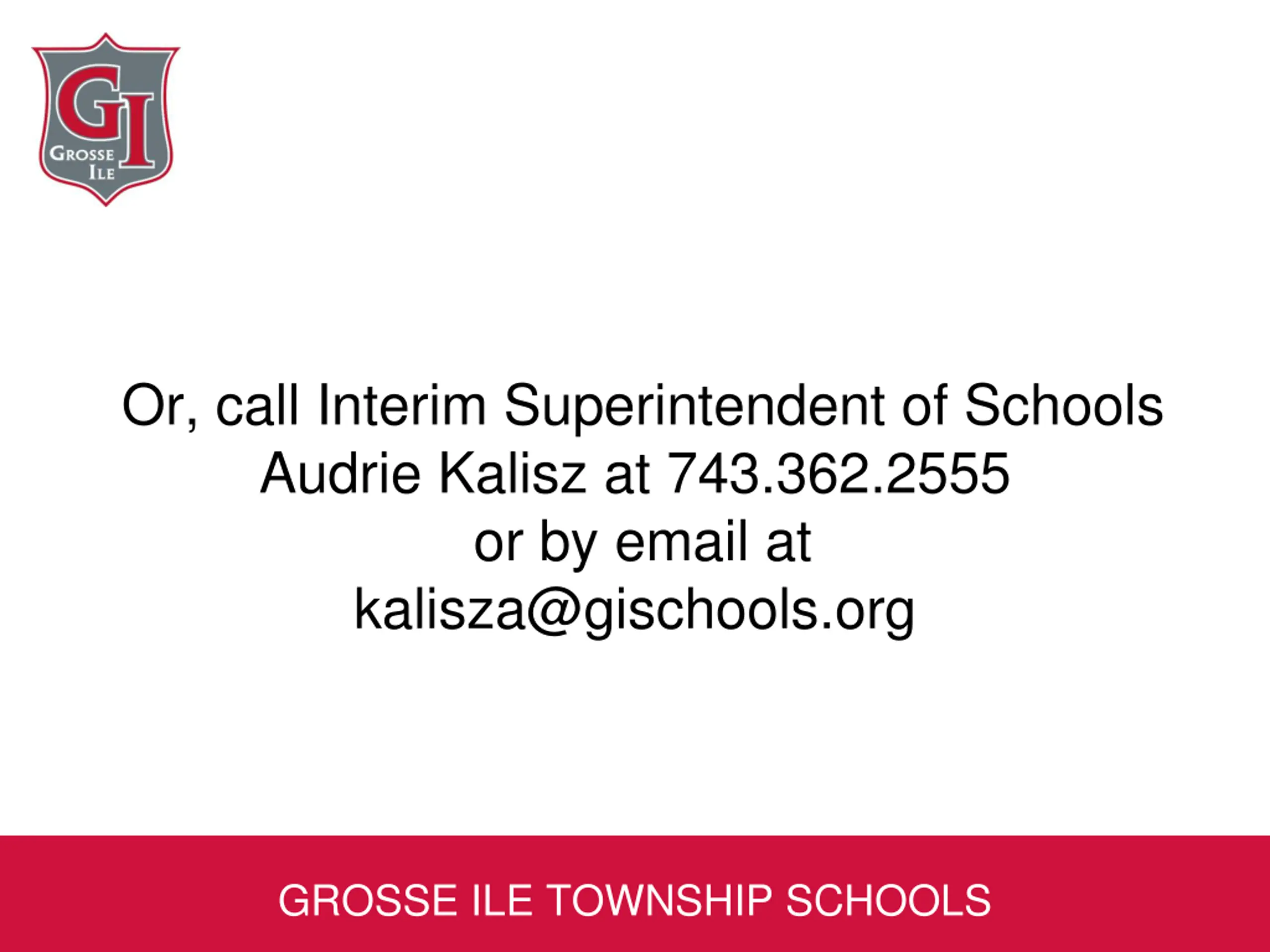 Or, call Interim Superintendent of Schools Audrie Kalisz at 743.362.2555 or by email at kalisza@gischools.org RICHMOND COMMUNITY SCHOOLS GROSSE ILE TOWNSHIP SCHOOLS