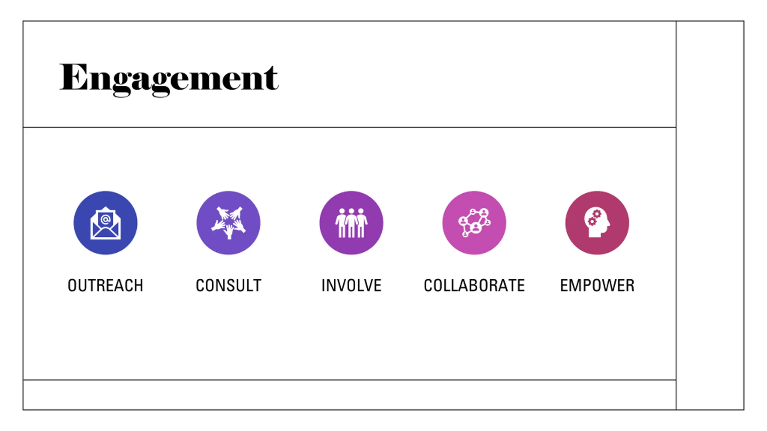 Engagement OUTREACH CONSULT INVOLVE COLLABORATE EMPOWER