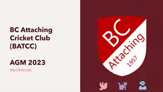 BURY ST EDMUNDS RUFC BURY ST EDMUNDS RUFC 2022 2022- -23 Season Highlights 23 Season Highlights 1. Membership: increase on previous year 2. Turnover: highest on record 3. Sponsorship: highest on record 4. 1st XV: Highest league position (5th) 5. Girl Players: 7 - 50 6. Woman s: 2nd team for first time 7. Community Rugby: more schools, larger community presence, break even 8. Facility improvement: undercover area, woman's changing (both donated) 9. Communication: Clearer brand - Social media, Pitchero, twitter 10. our #oneclub ethos is truly starting to be clear across the whole club 2023 2023 - - AGM AGM