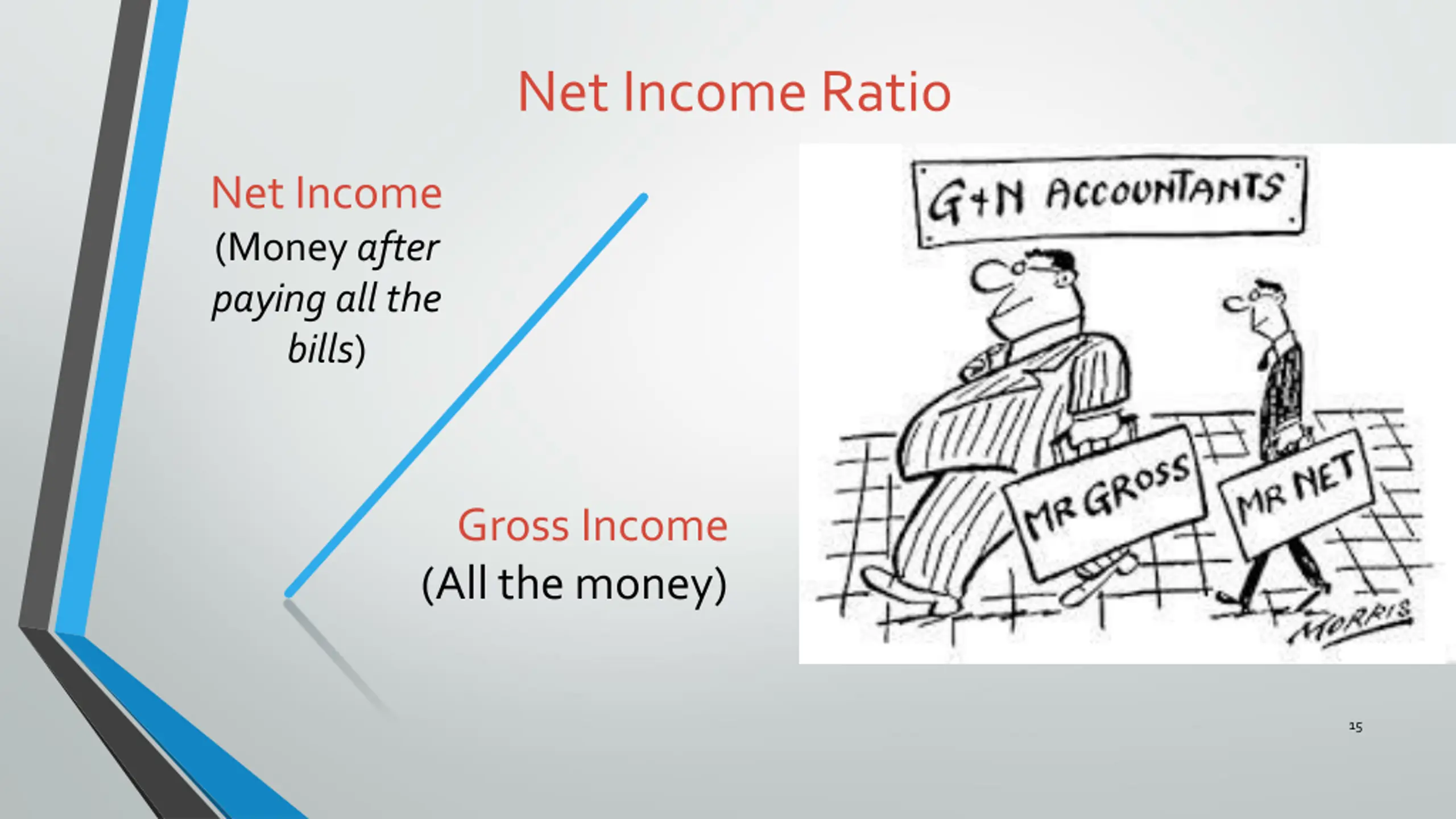 Net Income Ratio Net Income (Money after paying all the bills) Gross Income (All the money) 15