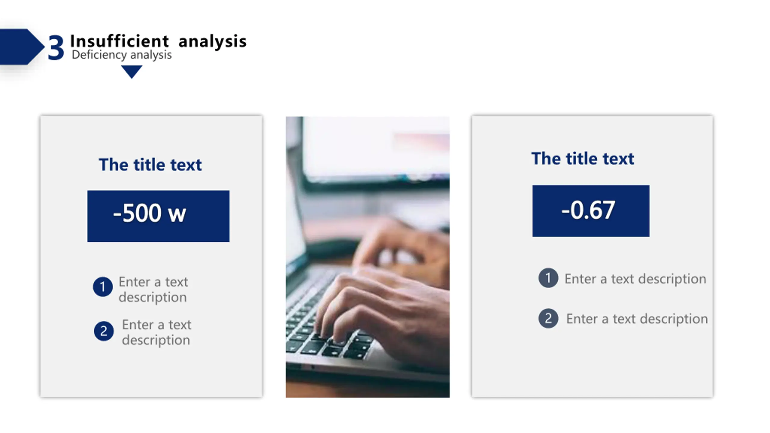 3 Insufficient analysis Deficiency analysis The title text The title text 1 Enter a text description Enter a text description 1 2 Enter a text description Enter a text description 2