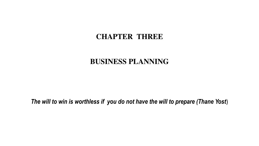CHAPTER THREE BUSINESS PLANNING The will to win is worthless if you do not have the will to prepare (Thane Yost)