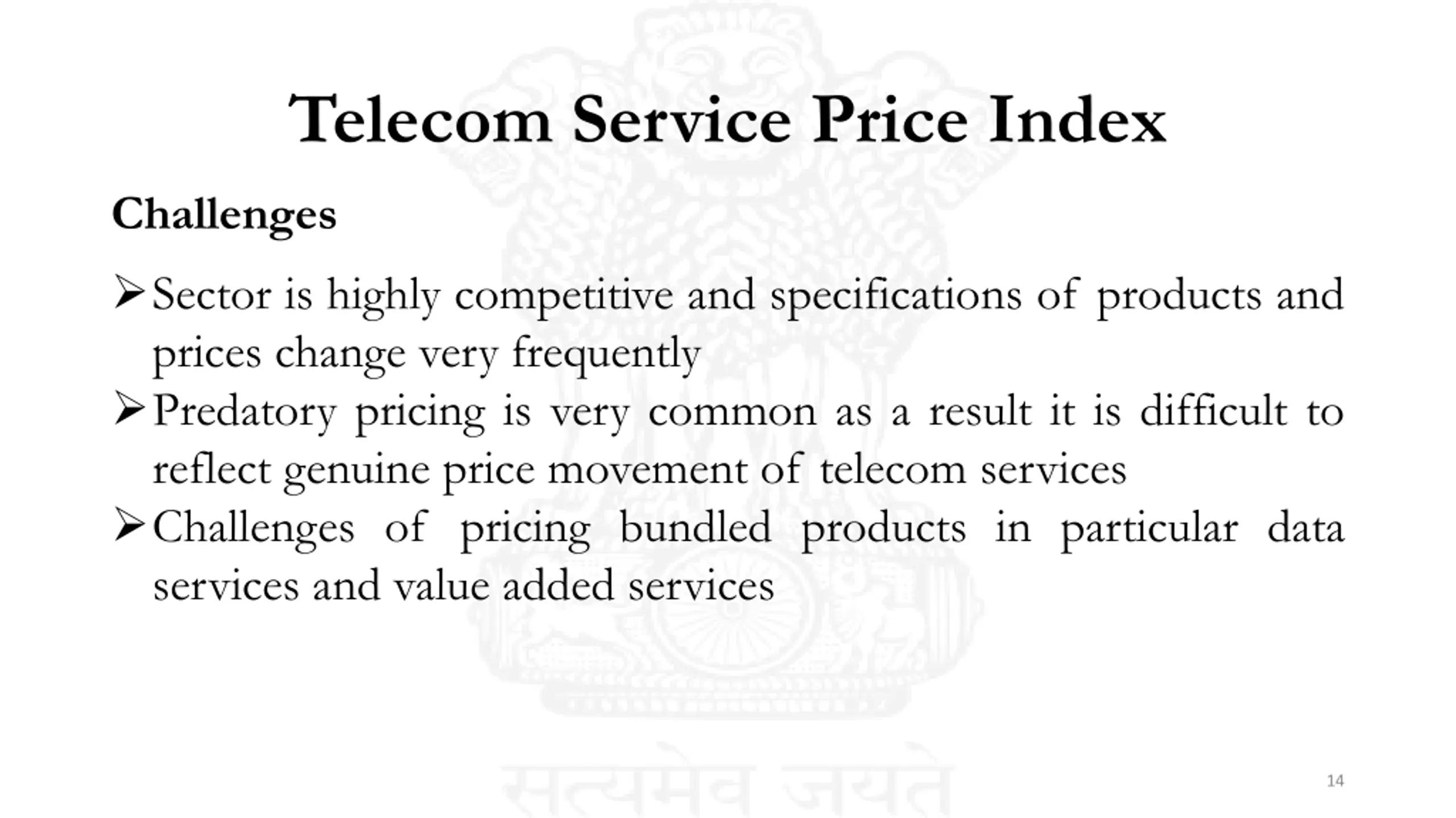 Telecom Service Price Index Challenges Sector is highly competitive and specifications of products and prices change very frequently Predatory pricing is very common as a result it is difficult to reflect genuine price movement of telecom services Challenges of pricing bundled products in particular data services and value added services 14