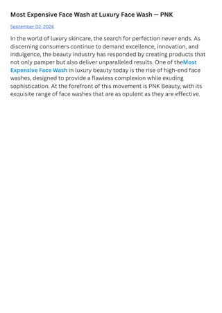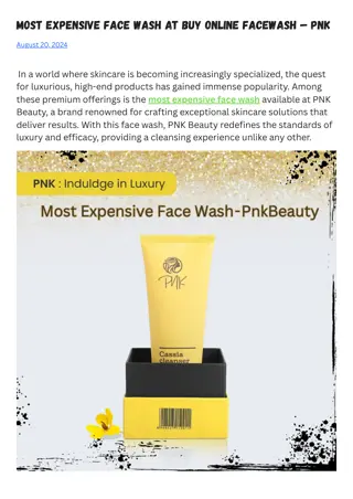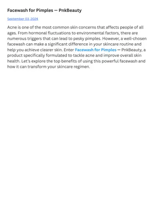 Buy online facewash | Cassia Cleanser - Pnk Beauty Introducing Cassia Cleanser by Pnk Beauty - your ultimate solution for clean and radiant skin. With its natural formulation and deep cleansing action, Cassia Cleanser stands out as a must-have addition to your skincare routine. Crafted with care, Cassia Cleanser harnesses the power of botanical extracts and skin-loving ingredients to provide a gentle yet e?ective cleansing experience. Its unique formula penetrates deep into the pores, removing dirt, oil, and impurities, leaving your skin feeling refreshed and revitalized. Whether you have oily, dry, combination, or sensitive skin, Cassia Cleanser caters to all skin types. Dermatologically tested for safety and e?cacy, it's gentle enough for daily use, yet potent enough to deliver noticeable results. But Cassia Cleanser isn't just about cleansing; it also o?ers gentle exfoliation, promoting smoother and brighter skin with continued use. Say goodbye to dullness and hello to a radiant complexion. With glowing customer testimonials praising its e?ectiveness, Cassia Cleanser has earned its place as a skincare staple. From reducing acne breakouts to improving overall skin texture, it's a game-changer for anyone looking to achieve their skincare goals. Ready to experience the di?erence for yourself? Purchase Cassia Cleanser online through the o?cial Pnk Beauty website and embark on a journey towards healthier, happier skin. Website URL -https://pnkbeauty.in/products/cassia-cleanser Contact - 9297929705 https://speakerdeck.com/pnk/pnk-e636f388-3588-4247-b836-1182f9941de7