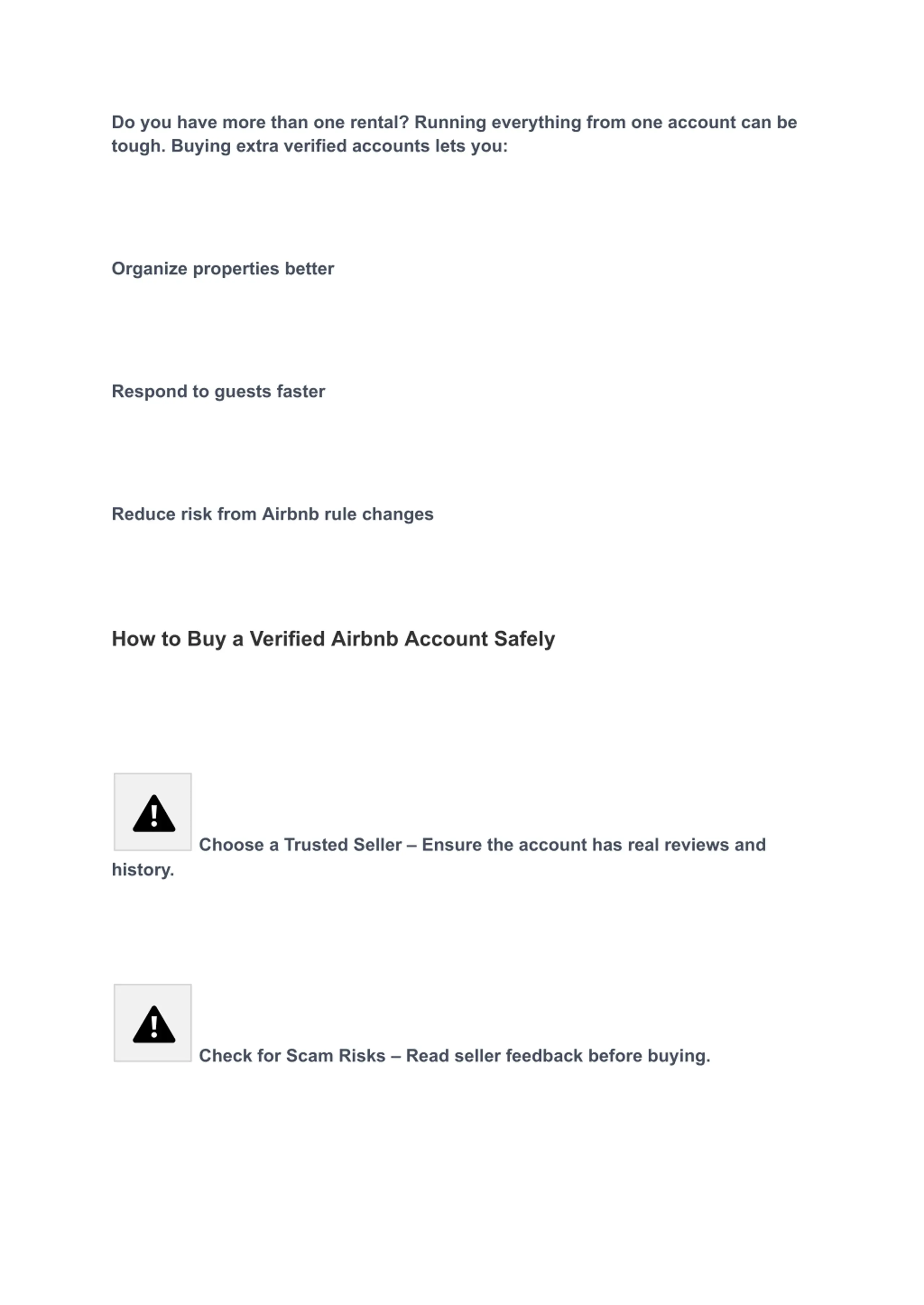Do you have more than one rental? Running everything from one account can be tough. Buying extra verified accounts lets you: Organize properties better Respond to guests faster Reduce risk from Airbnb rule changes How to Buy a Verified Airbnb Account Safely Choose a Trusted Seller Ensure the account has real reviews and history. Check for Scam Risks Read seller feedback before buying.