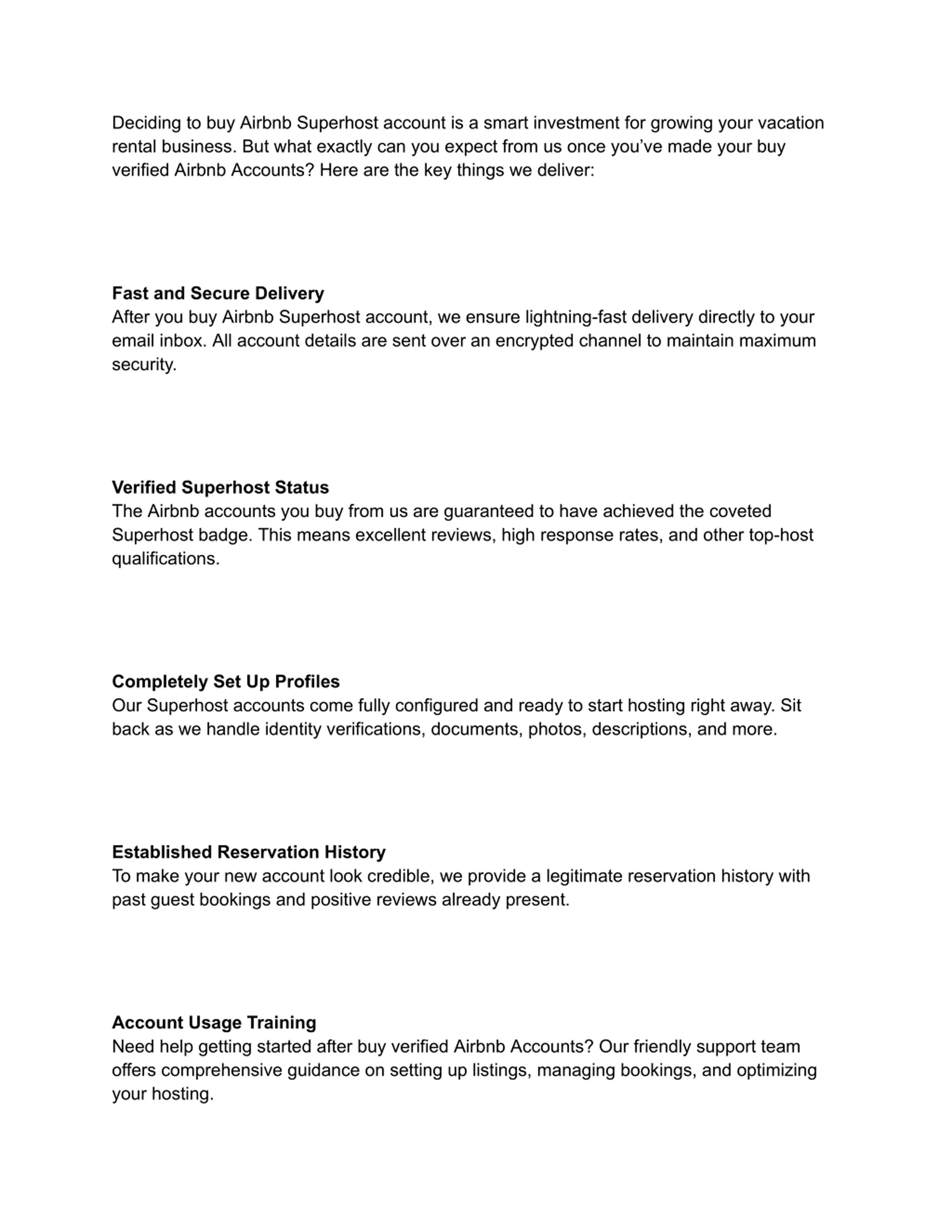 Continued Account Management We don t simply deliver the account and disappear. Our team is available for any assistance you need with managing and growing your new Superhost account over time. So, buy verified Airbnb Accounts. From the speedy secure handover to ongoing support, we ensure buy Airbnb Superhost Account is a completely hassle-free experience. Simply make your buy Airbnb Superhost Account and start leveraging the benefits of Superhost status immediately! Contact us today to buy your Superhost account.