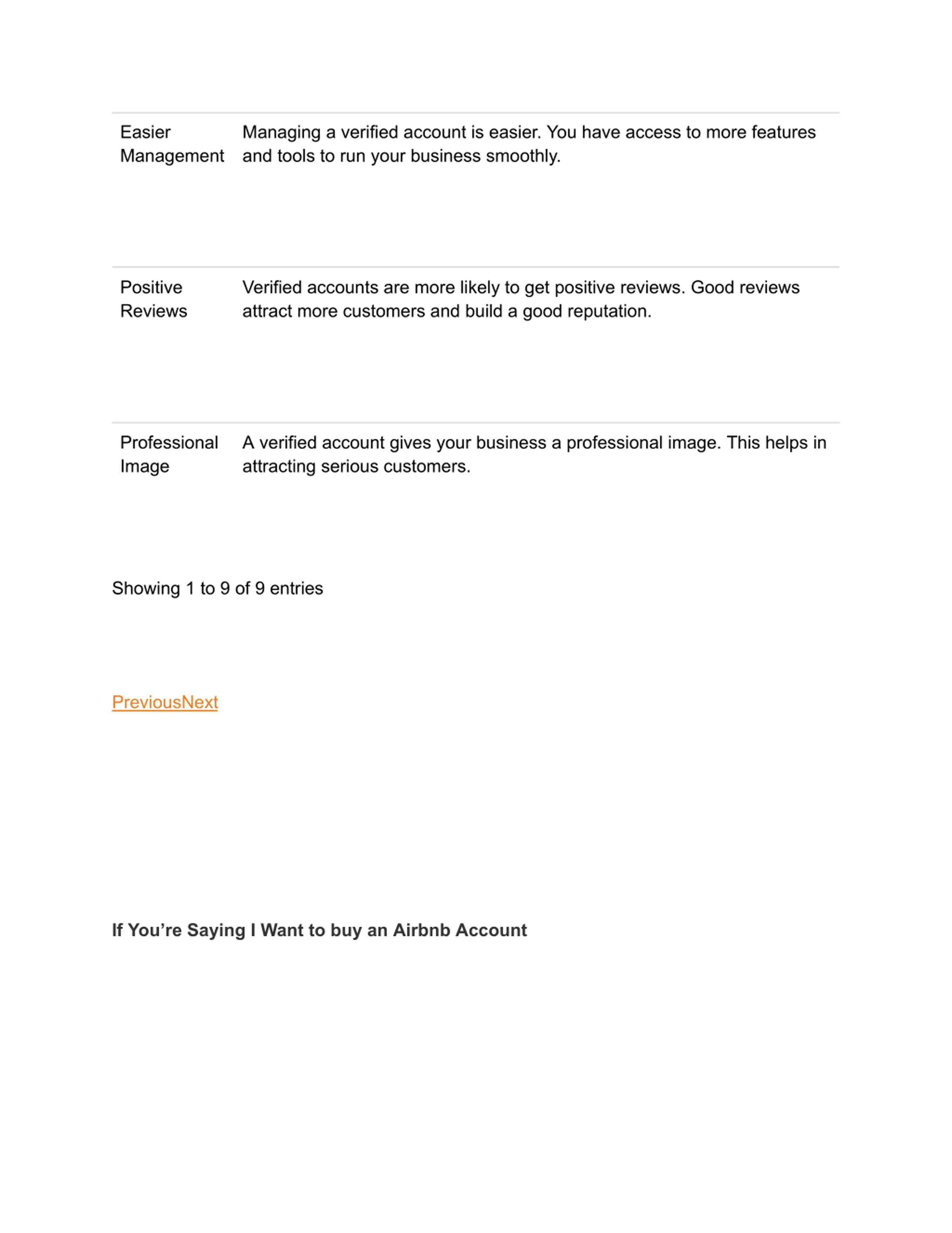 Easier Management Managing a verified account is easier. You have access to more features and tools to run your business smoothly. Positive Reviews Verified accounts are more likely to get positive reviews. Good reviews attract more customers and build a good reputation. Professional Image A verified account gives your business a professional image. This helps in attracting serious customers. Showing 1 to 9 of 9 entries PreviousNext If You re Saying I Want to buy an Airbnb Account