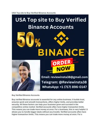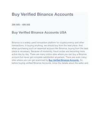 two-factor authentication. These features keep the account secure and ready for trading. So, buy Verified Binance Accounts USA. Second, avoid unknown or shady websites. Scammers often offer low prices but sell fake or compromised accounts. These accounts could get banned or cause other problems, so it s better to invest in a trusted source. Lastly, check if the seller follows Binance s guidelines. This ensures your account will work smoothly without any issues. Verified Binance accounts give you access to more features, quicker transactions, and less hassle, improving your crypto experience. So, buy Verified Binance Accounts USA.