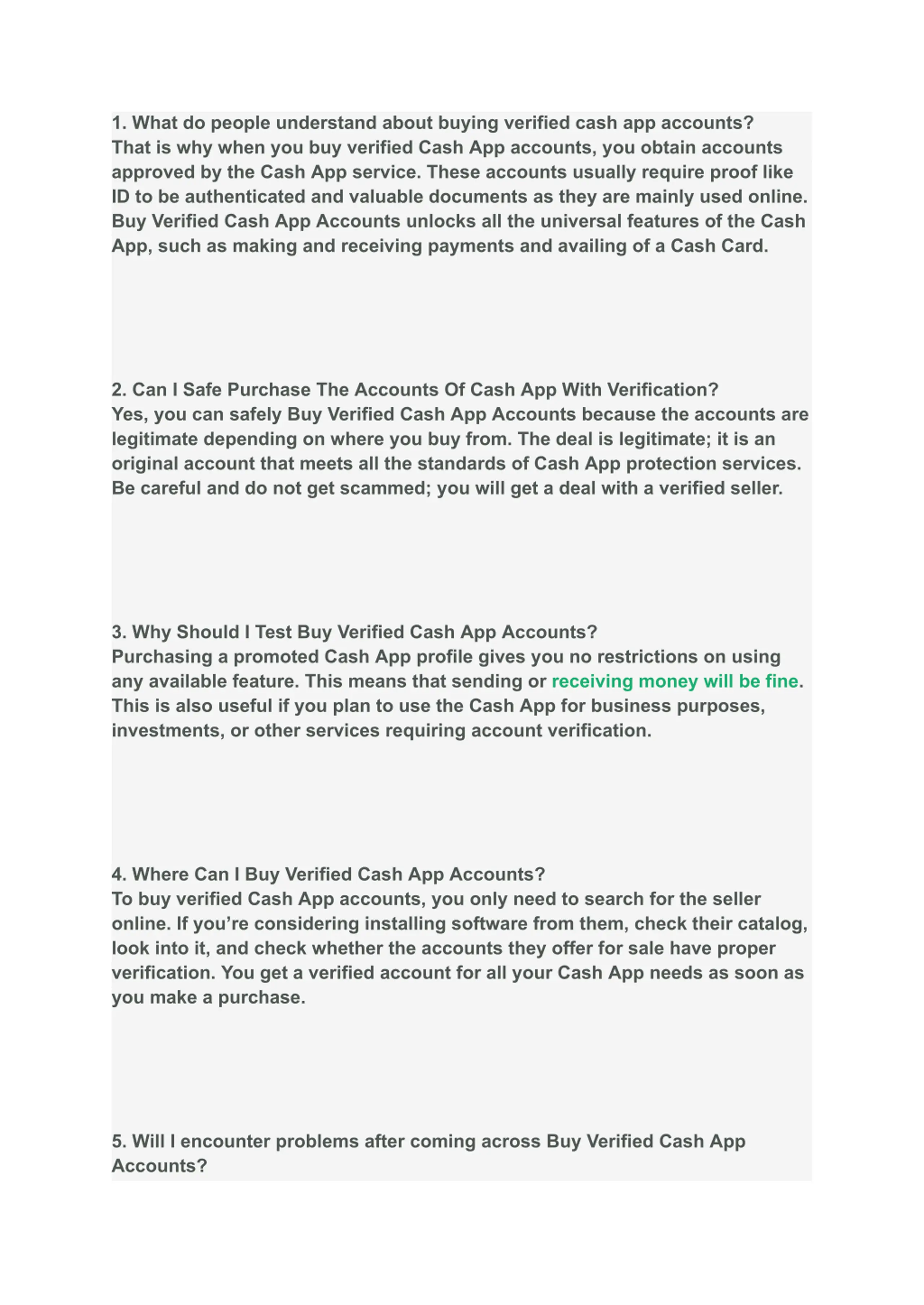1. What do people understand about buying verified cash app accounts? That is why when you buy verified Cash App accounts, you obtain accounts approved by the Cash App service. These accounts usually require proof like ID to be authenticated and valuable documents as they are mainly used online. Buy Verified Cash App Accounts unlocks all the universal features of the Cash App, such as making and receiving payments and availing of a Cash Card. 2. Can I Safe Purchase The Accounts Of Cash App With Verification? Yes, you can safely Buy Verified Cash App Accounts because the accounts are legitimate depending on where you buy from. The deal is legitimate; it is an original account that meets all the standards of Cash App protection services. Be careful and do not get scammed; you will get a deal with a verified seller. 3. Why Should I Test Buy Verified Cash App Accounts? Purchasing a promoted Cash App profile gives you no restrictions on using any available feature. This means that sending or receiving money will be fine. This is also useful if you plan to use the Cash App for business purposes, investments, or other services requiring account verification. 4. Where Can I Buy Verified Cash App Accounts? To buy verified Cash App accounts, you only need to search for the seller online. If you re considering installing software from them, check their catalog, look into it, and check whether the accounts they offer for sale have proper verification. You get a verified account for all your Cash App needs as soon as you make a purchase. 5. Will I encounter problems after coming across Buy Verified Cash App Accounts?