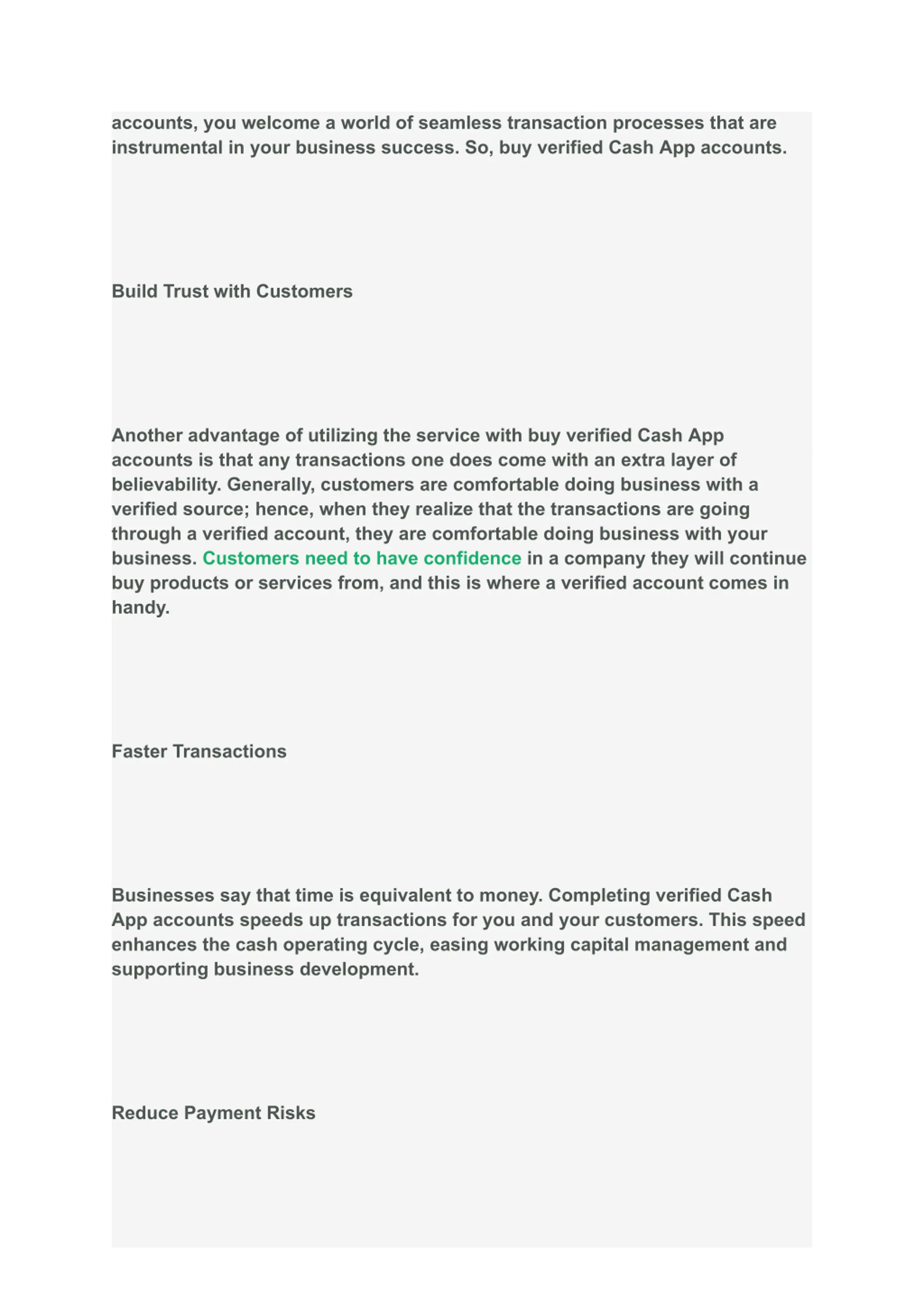 accounts, you welcome a world of seamless transaction processes that are instrumental in your business success. So, buy verified Cash App accounts. Build Trust with Customers Another advantage of utilizing the service with buy verified Cash App accounts is that any transactions one does come with an extra layer of believability. Generally, customers are comfortable doing business with a verified source; hence, when they realize that the transactions are going through a verified account, they are comfortable doing business with your business. Customers need to have confidence in a company they will continue buy products or services from, and this is where a verified account comes in handy. Faster Transactions Businesses say that time is equivalent to money. Completing verified Cash App accounts speeds up transactions for you and your customers. This speed enhances the cash operating cycle, easing working capital management and supporting business development. Reduce Payment Risks