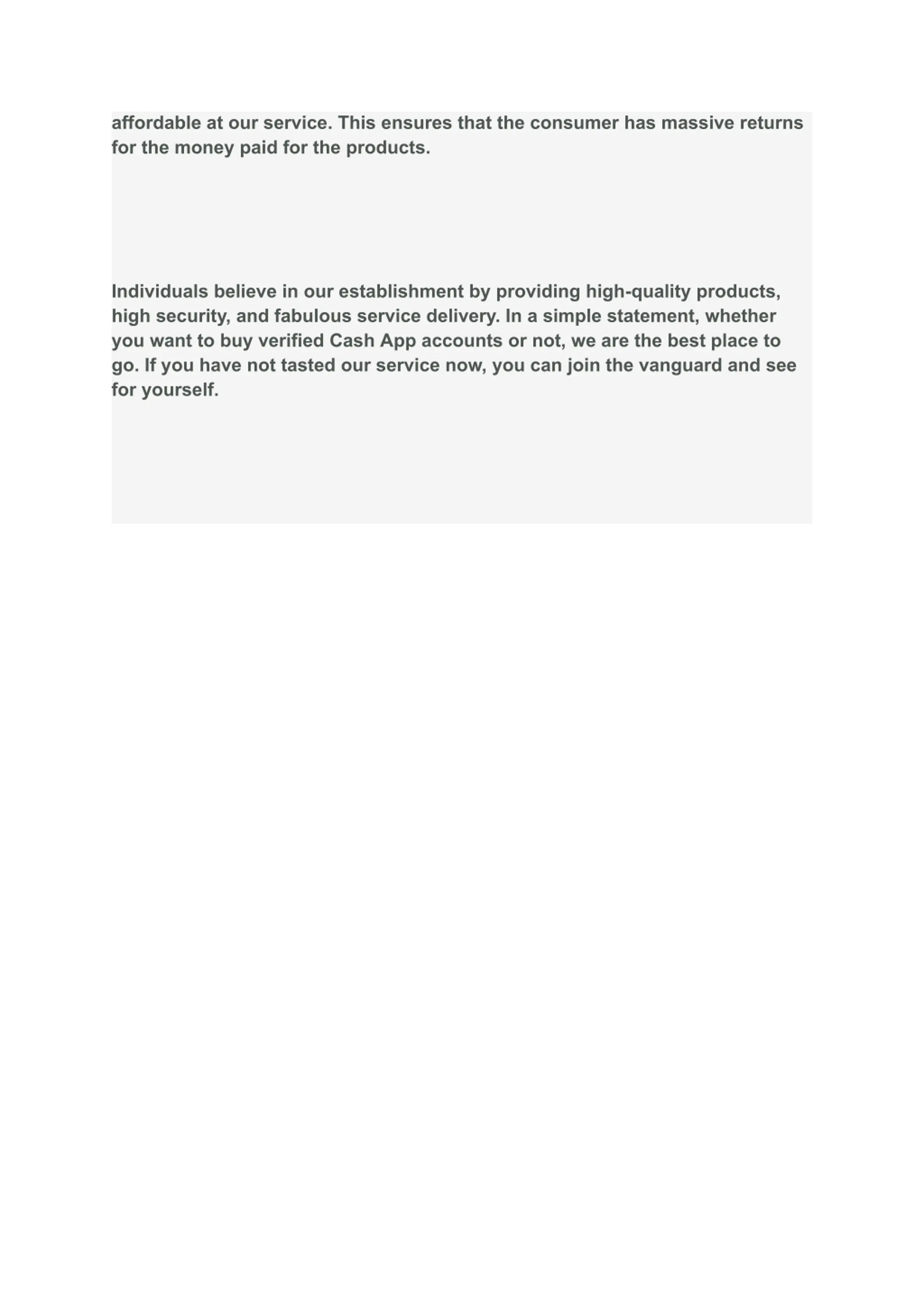 affordable at our service. This ensures that the consumer has massive returns for the money paid for the products. Individuals believe in our establishment by providing high-quality products, high security, and fabulous service delivery. In a simple statement, whether you want to buy verified Cash App accounts or not, we are the best place to go. If you have not tasted our service now, you can join the vanguard and see for yourself.