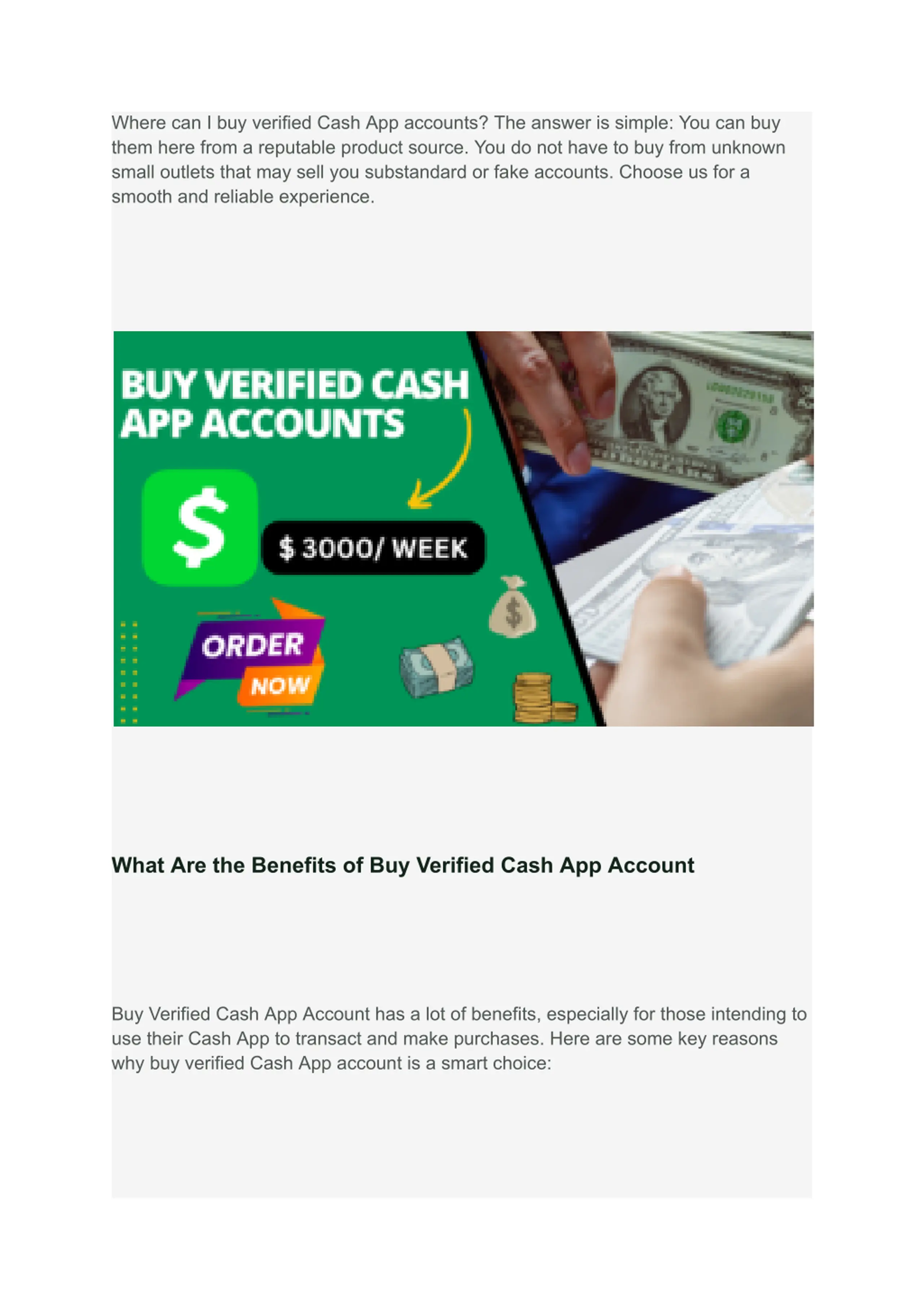 3. Where can I buy verified Cash App accounts? The answer is simple: You can buy them here from a reputable product source. You do not have to buy from unknown small outlets that may sell you substandard or fake accounts. Choose us for a smooth and reliable experience. What Are the Benefits of Buy Verified Cash App Account Buy Verified Cash App Account has a lot of benefits, especially for those intending to use their Cash App to transact and make purchases. Here are some key reasons why buy verified Cash App account is a smart choice: