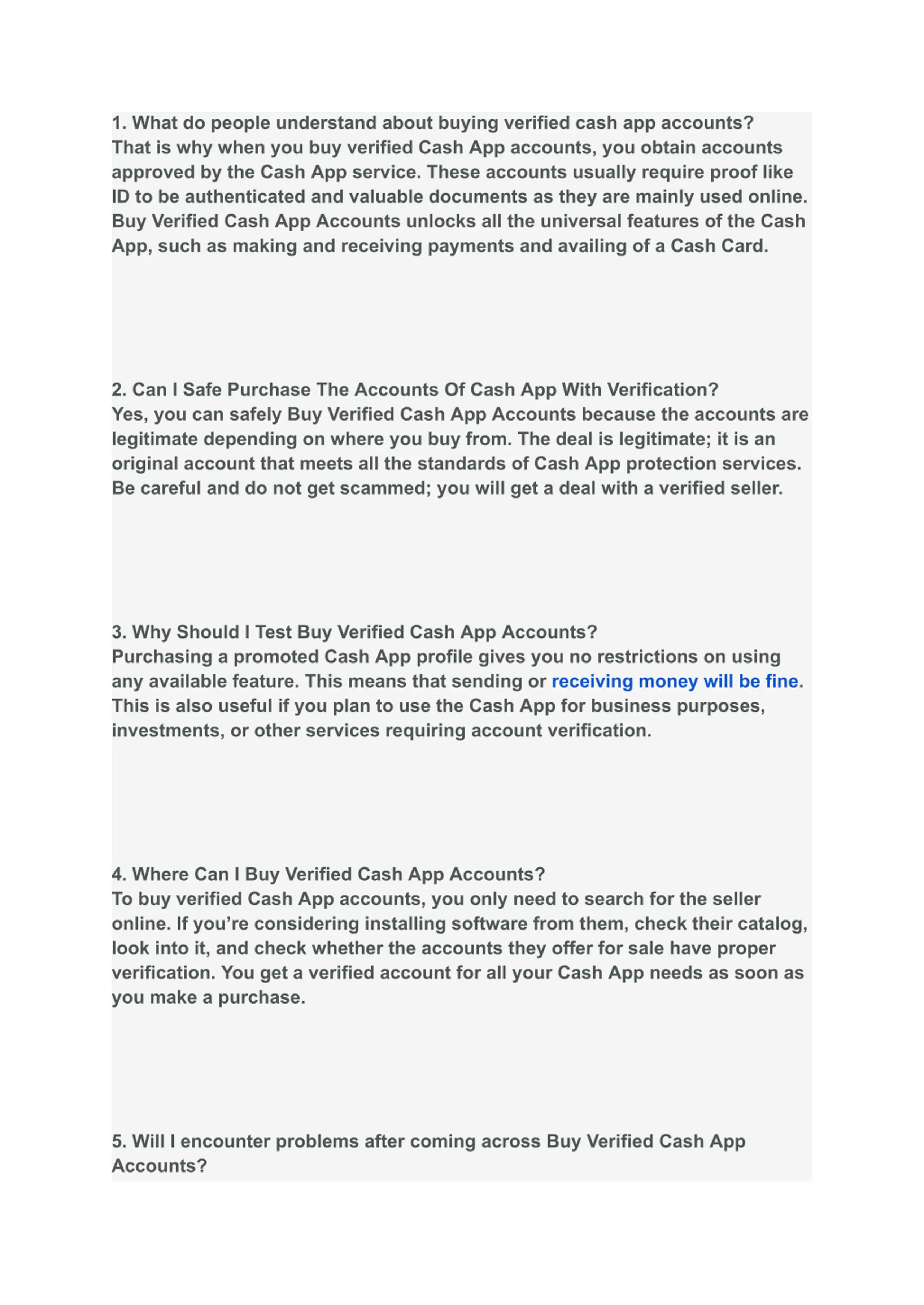 1. What do people understand about buying verified cash app accounts? That is why when you buy verified Cash App accounts, you obtain accounts approved by the Cash App service. These accounts usually require proof like ID to be authenticated and valuable documents as they are mainly used online. Buy Verified Cash App Accounts unlocks all the universal features of the Cash App, such as making and receiving payments and availing of a Cash Card. 2. Can I Safe Purchase The Accounts Of Cash App With Verification? Yes, you can safely Buy Verified Cash App Accounts because the accounts are legitimate depending on where you buy from. The deal is legitimate; it is an original account that meets all the standards of Cash App protection services. Be careful and do not get scammed; you will get a deal with a verified seller. 3. Why Should I Test Buy Verified Cash App Accounts? Purchasing a promoted Cash App profile gives you no restrictions on using any available feature. This means that sending or receiving money will be fine. This is also useful if you plan to use the Cash App for business purposes, investments, or other services requiring account verification. 4. Where Can I Buy Verified Cash App Accounts? To buy verified Cash App accounts, you only need to search for the seller online. If you re considering installing software from them, check their catalog, look into it, and check whether the accounts they offer for sale have proper verification. You get a verified account for all your Cash App needs as soon as you make a purchase. 5. Will I encounter problems after coming across Buy Verified Cash App Accounts?