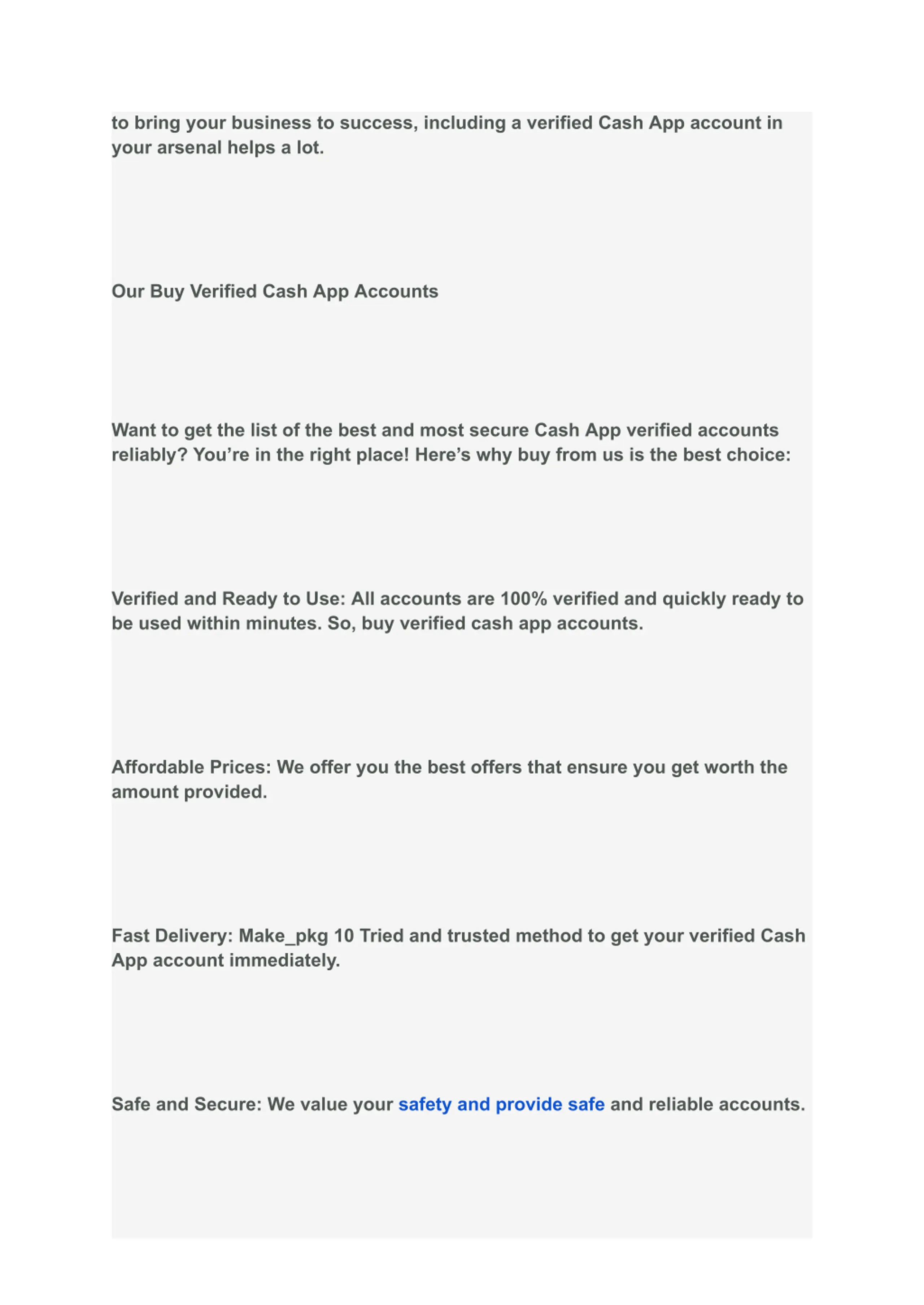 to bring your business to success, including a verified Cash App account in your arsenal helps a lot. Our Buy Verified Cash App Accounts Want to get the list of the best and most secure Cash App verified accounts reliably? You re in the right place! Here s why buy from us is the best choice: Verified and Ready to Use: All accounts are 100% verified and quickly ready to be used within minutes. So, buy verified cash app accounts. Affordable Prices: We offer you the best offers that ensure you get worth the amount provided. Fast Delivery: Make_pkg 10 Tried and trusted method to get your verified Cash App account immediately. Safe and Secure: We value your safety and provide safe and reliable accounts.