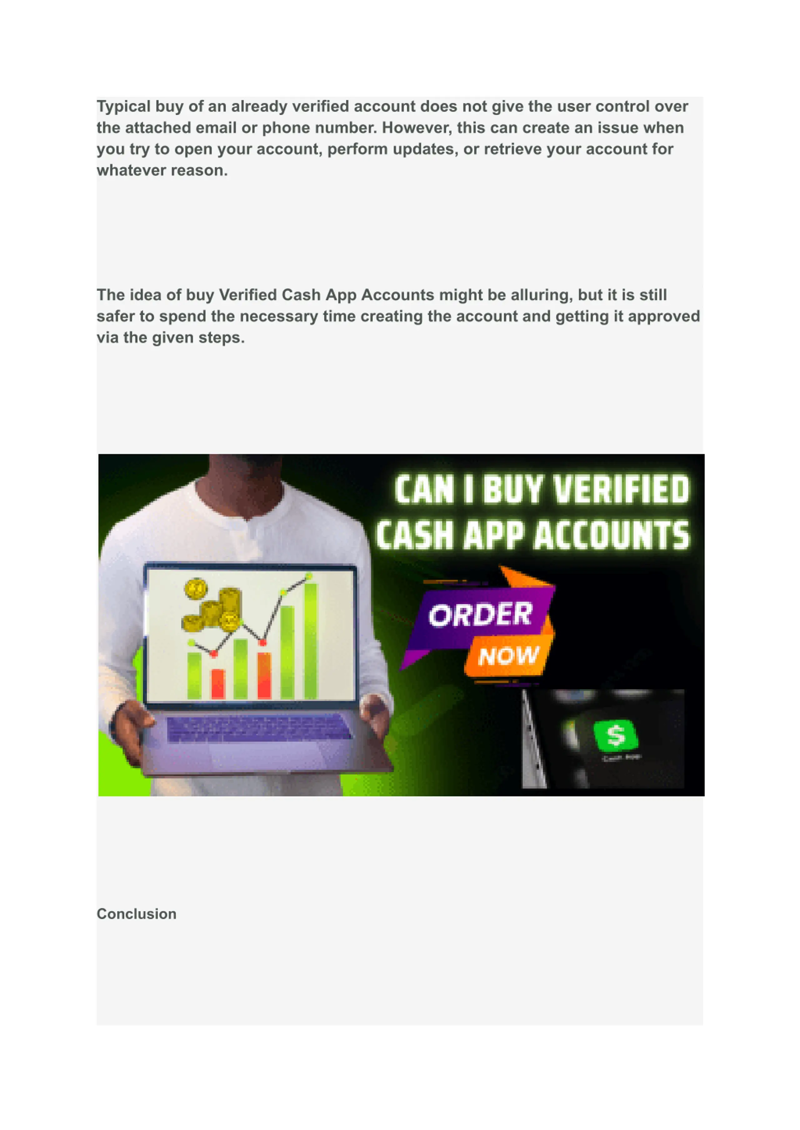 Typical buy of an already verified account does not give the user control over the attached email or phone number. However, this can create an issue when you try to open your account, perform updates, or retrieve your account for whatever reason. The idea of buy Verified Cash App Accounts might be alluring, but it is still safer to spend the necessary time creating the account and getting it approved via the given steps. Conclusion