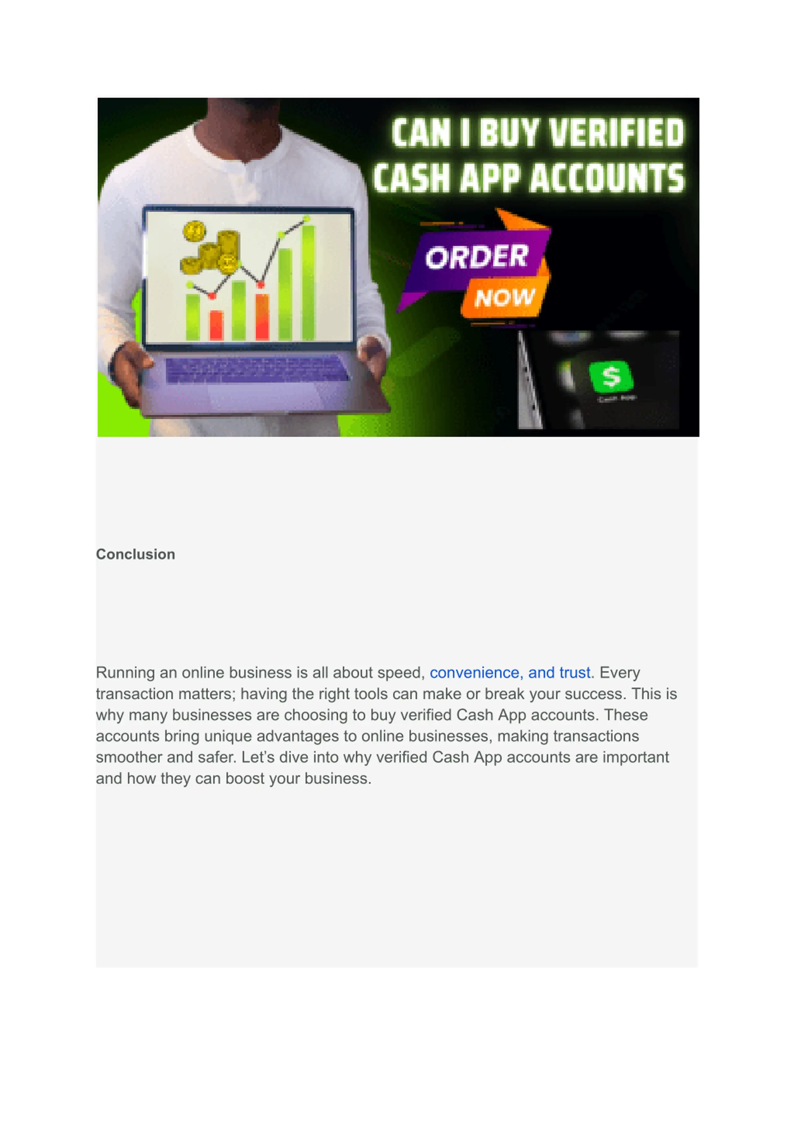 Conclusion Running an online business is all about speed, convenience, and trust. Every transaction matters; having the right tools can make or break your success. This is why many businesses are choosing to buy verified Cash App accounts. These accounts bring unique advantages to online businesses, making transactions smoother and safer. Let s dive into why verified Cash App accounts are important and how they can boost your business.