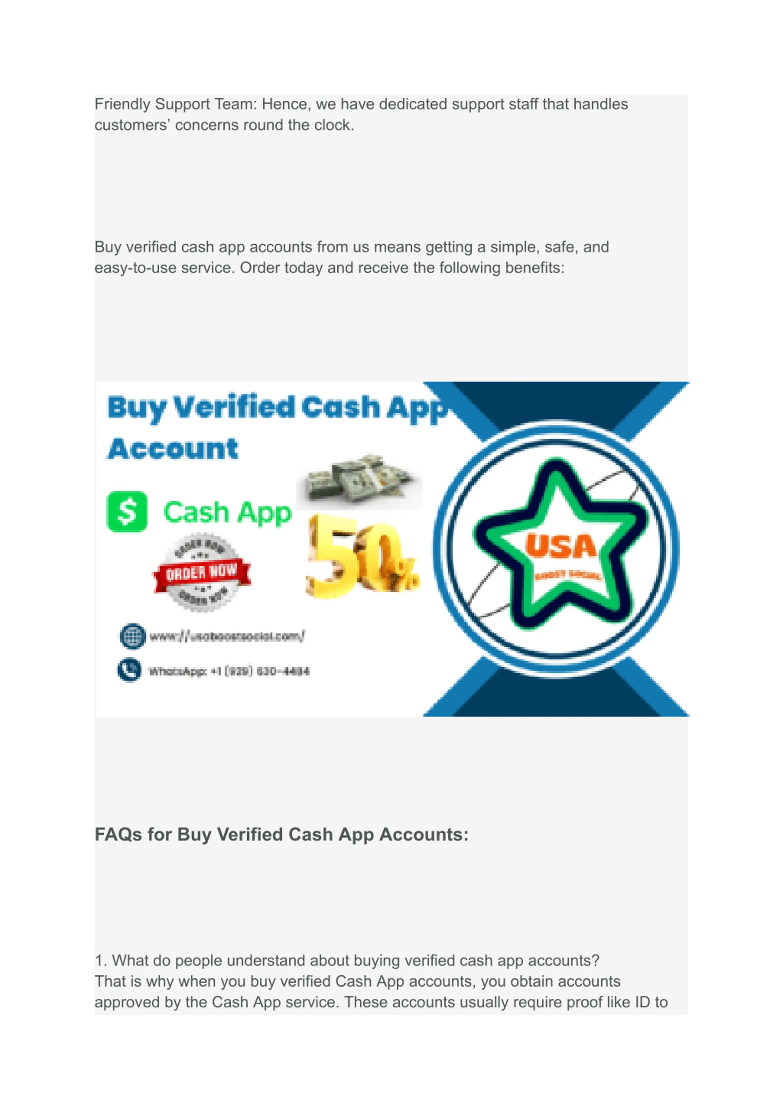 100% original USA IP verified cash app accounts. 100% authentic USA phone number verified cash app account. we offer a lifetime stability guarantee for every cash app account. Suitable for every country. Super rapid delivery after order confirmation. 24/7 rapid customer response service. Lifetime replacement warranty. 100% money-back guarantee. Please contact 24-hour any time Email: usaboostsocial@gmail.com Telegram: @usaboostsocial Skype: usaboostsocial WhatsApp: +1 (929) 630-4484 https://usaboostsocial.com/product/buy-verified-cash-app-accounts/ Where Can I Buy Verified Cash App Accounts Are you interested in buy Verified Cash App Accounts with genuine activity? You ve arrived at the correct location. Many people need these accounts for smooth transactions and quick money transfers. Verified accounts make it easier to send and receive money without any restrictions. But where can you find a trusted seller to buy verified Cash App accounts? You can acquire verified Cash App accounts from one of the legit online stores, including us. We offer our accounts fully confirmed and approved for you to use without any further information. These accounts are safe, secure, and created with genuine information. Whether you need one account or several, we ensure fast delivery and excellent service.