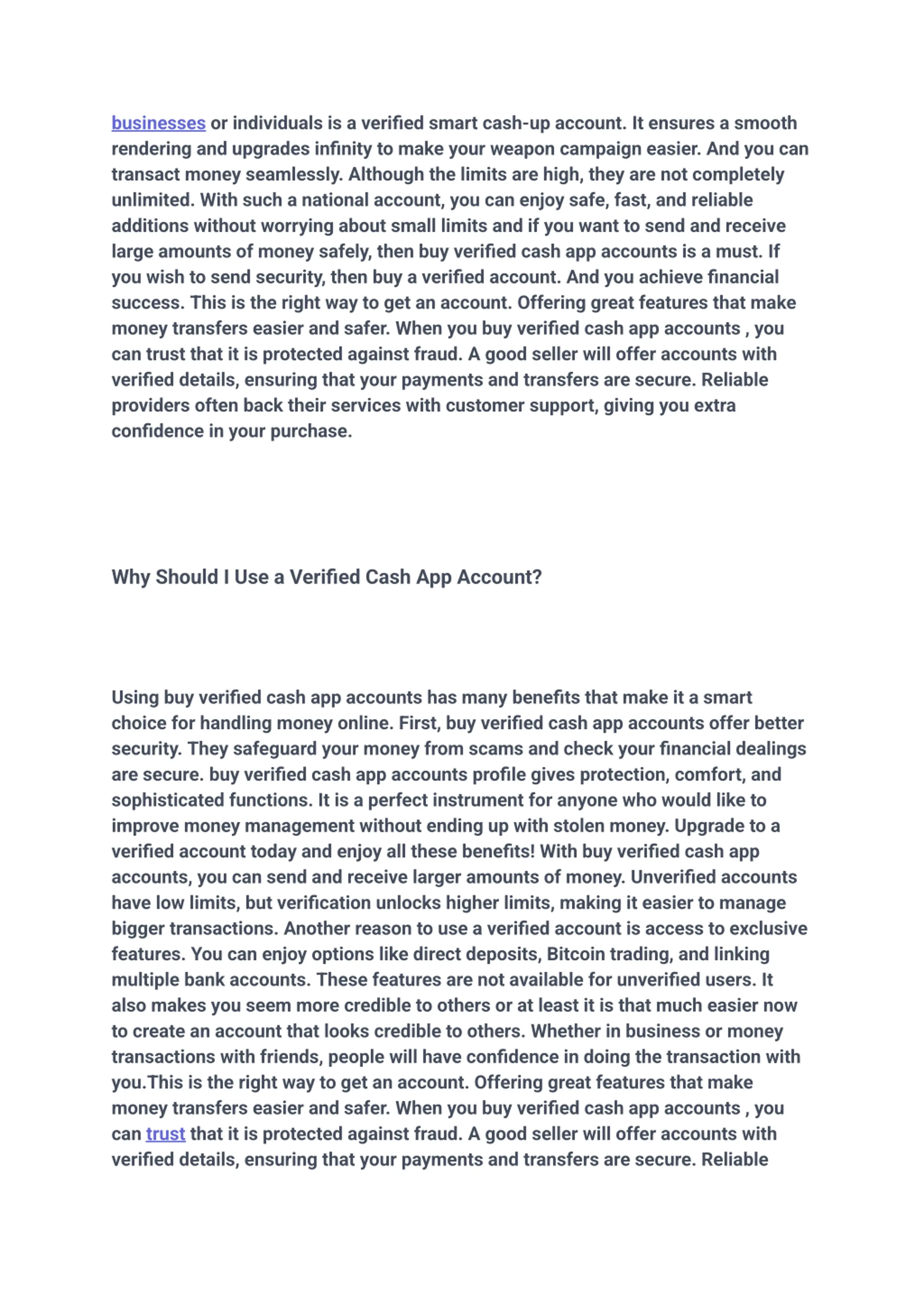 10. businesses or individuals is a verified smart cash-up account. It ensures a smooth rendering and upgrades infinity to make your weapon campaign easier. And you can transact money seamlessly. Although the limits are high, they are not completely unlimited. With such a national account, you can enjoy safe, fast, and reliable additions without worrying about small limits and if you want to send and receive large amounts of money safely, then buy verified cash app accounts is a must. If you wish to send security, then buy a verified account. And you achieve financial success. This is the right way to get an account. Offering great features that make money transfers easier and safer. When you buy verified cash app accounts , you can trust that it is protected against fraud. A good seller will offer accounts with verified details, ensuring that your payments and transfers are secure. Reliable providers often back their services with customer support, giving you extra confidence in your purchase. Why Should I Use a Verified Cash App Account? Using buy verified cash app accounts has many benefits that make it a smart choice for handling money online. First, buy verified cash app accounts offer better security. They safeguard your money from scams and check your financial dealings are secure. buy verified cash app accounts profile gives protection, comfort, and sophisticated functions. It is a perfect instrument for anyone who would like to improve money management without ending up with stolen money. Upgrade to a verified account today and enjoy all these benefits! With buy verified cash app accounts, you can send and receive larger amounts of money. Unverified accounts have low limits, but verification unlocks higher limits, making it easier to manage bigger transactions. Another reason to use a verified account is access to exclusive features. You can enjoy options like direct deposits, Bitcoin trading, and linking multiple bank accounts. These features are not available for unverified users. It also makes you seem more credible to others or at least it is that much easier now to create an account that looks credible to others. Whether in business or money transactions with friends, people will have confidence in doing the transaction with you.This is the right way to get an account. Offering great features that make money transfers easier and safer. When you buy verified cash app accounts , you can trust that it is protected against fraud. A good seller will offer accounts with verified details, ensuring that your payments and transfers are secure. Reliable
