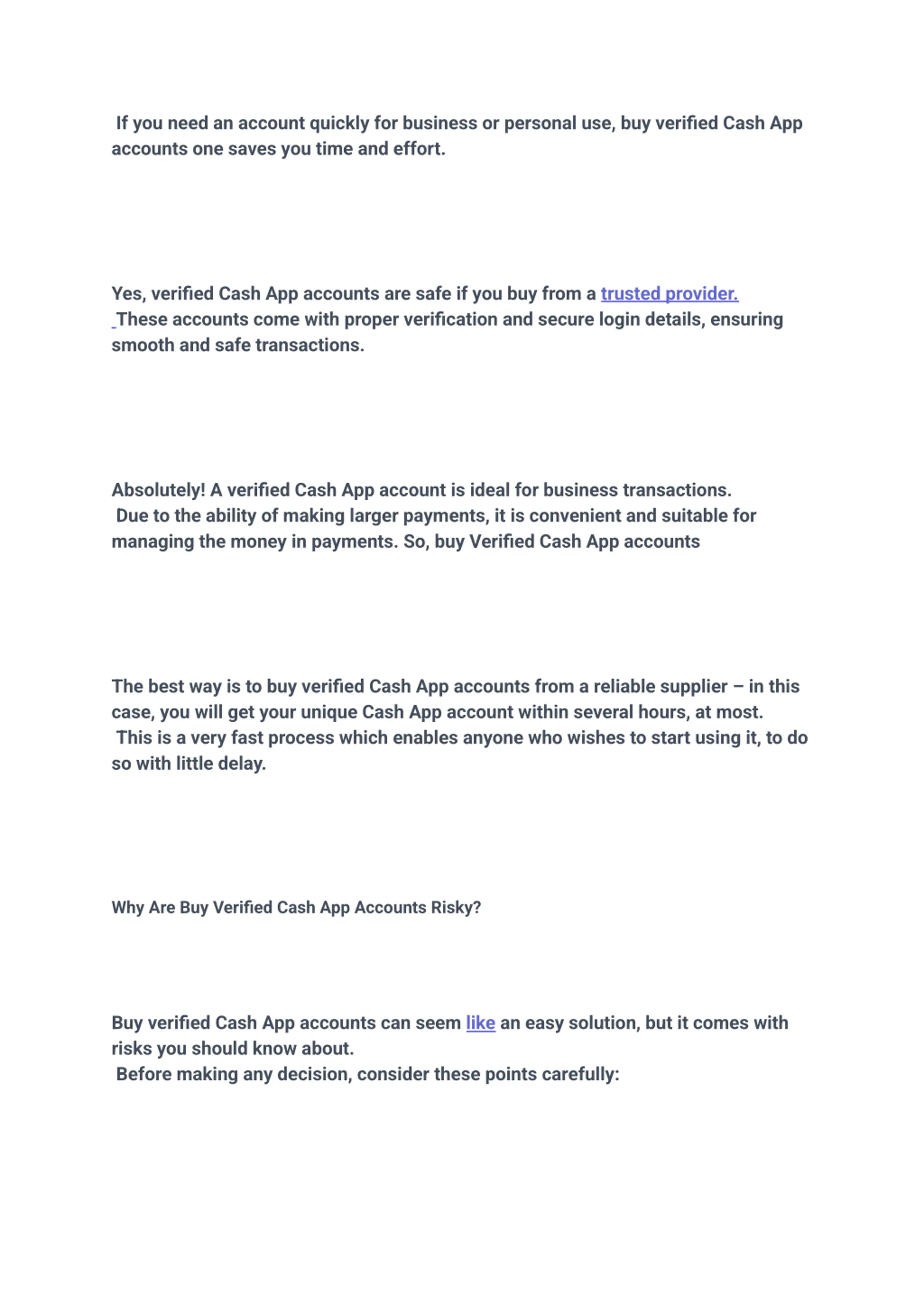 13. If you need an account quickly for business or personal use, buy verified Cash App accounts one saves you time and effort. Yes, verified Cash App accounts are safe if you buy from a trusted provider. These accounts come with proper verification and secure login details, ensuring smooth and safe transactions. Absolutely! A verified Cash App account is ideal for business transactions. Due to the ability of making larger payments, it is convenient and suitable for managing the money in payments. So, buy Verified Cash App accounts The best way is to buy verified Cash App accounts from a reliable supplier in this case, you will get your unique Cash App account within several hours, at most. This is a very fast process which enables anyone who wishes to start using it, to do so with little delay. Why Are Buy Verified Cash App Accounts Risky? Buy verified Cash App accounts can seem like an easy solution, but it comes with risks you should know about. Before making any decision, consider these points carefully: