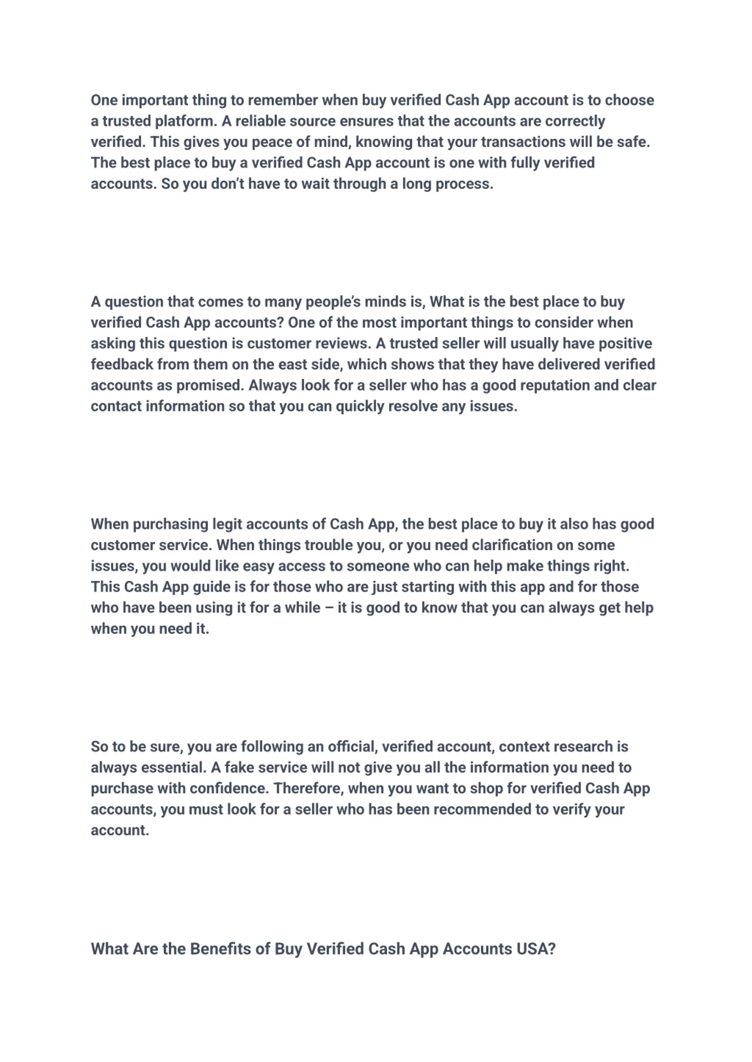 5. One important thing to remember when buy verified Cash App account is to choose a trusted platform. A reliable source ensures that the accounts are correctly verified. This gives you peace of mind, knowing that your transactions will be safe. The best place to buy a verified Cash App account is one with fully verified accounts. So you don t have to wait through a long process. A question that comes to many people s minds is, What is the best place to buy verified Cash App accounts? One of the most important things to consider when asking this question is customer reviews. A trusted seller will usually have positive feedback from them on the east side, which shows that they have delivered verified accounts as promised. Always look for a seller who has a good reputation and clear contact information so that you can quickly resolve any issues. When purchasing legit accounts of Cash App, the best place to buy it also has good customer service. When things trouble you, or you need clarification on some issues, you would like easy access to someone who can help make things right. This Cash App guide is for those who are just starting with this app and for those who have been using it for a while it is good to know that you can always get help when you need it. So to be sure, you are following an official, verified account, context research is always essential. A fake service will not give you all the information you need to purchase with confidence. Therefore, when you want to shop for verified Cash App accounts, you must look for a seller who has been recommended to verify your account. What Are the Benefits of Buy Verified Cash App Accounts USA?