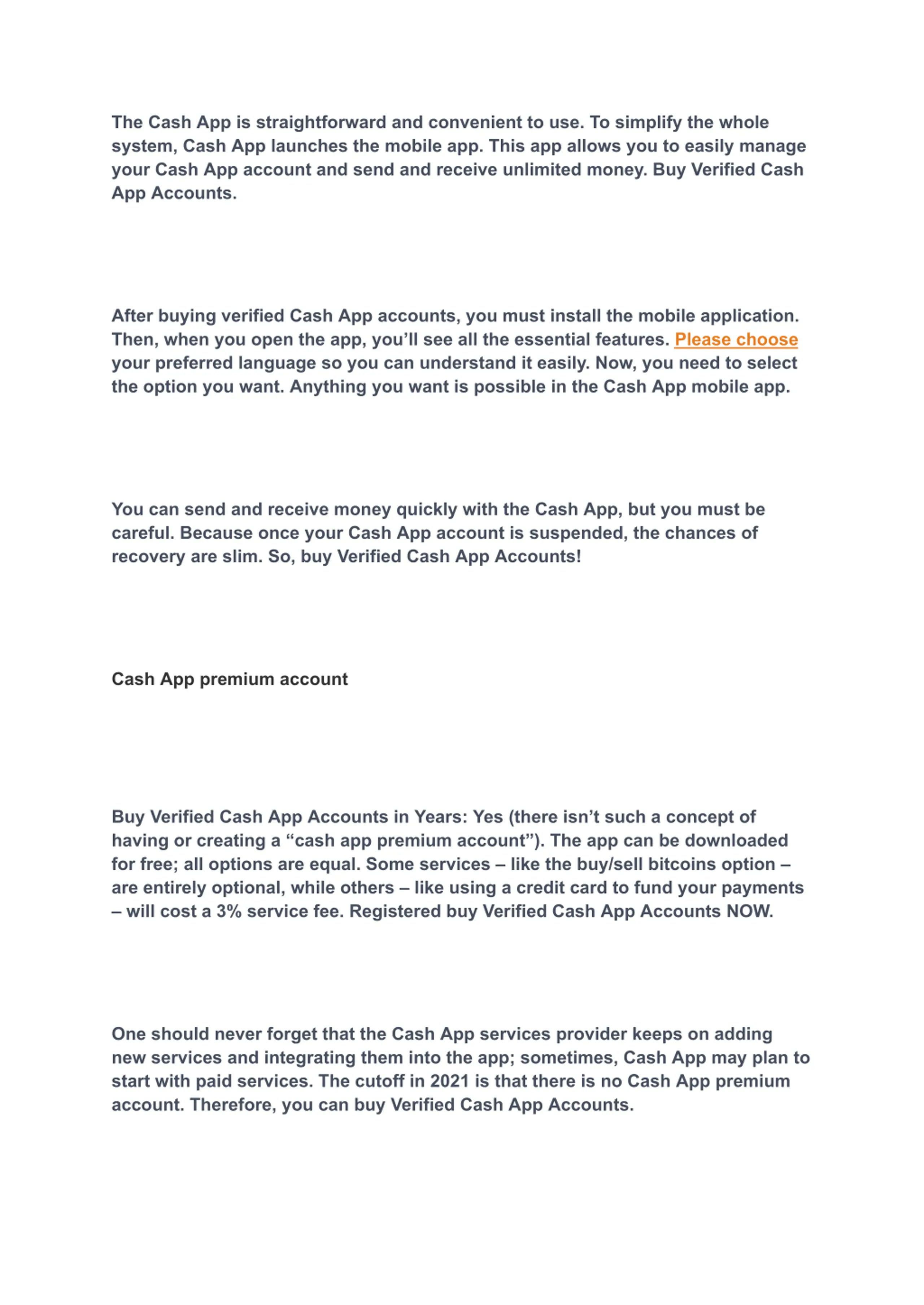 The Cash App is straightforward and convenient to use. To simplify the whole system, Cash App launches the mobile app. This app allows you to easily manage your Cash App account and send and receive unlimited money. Buy Verified Cash App Accounts. After buying verified Cash App accounts, you must install the mobile application. Then, when you open the app, you ll see all the essential features. Please choose your preferred language so you can understand it easily. Now, you need to select the option you want. Anything you want is possible in the Cash App mobile app. You can send and receive money quickly with the Cash App, but you must be careful. Because once your Cash App account is suspended, the chances of recovery are slim. So, buy Verified Cash App Accounts! Cash App premium account Buy Verified Cash App Accounts in Years: Yes (there isn t such a concept of having or creating a cash app premium account ). The app can be downloaded for free; all options are equal. Some services like the buy/sell bitcoins option are entirely optional, while others like using a credit card to fund your payments will cost a 3% service fee. Registered buy Verified Cash App Accounts NOW. One should never forget that the Cash App services provider keeps on adding new services and integrating them into the app; sometimes, Cash App may plan to start with paid services. The cutoff in 2021 is that there is no Cash App premium account. Therefore, you can buy Verified Cash App Accounts.