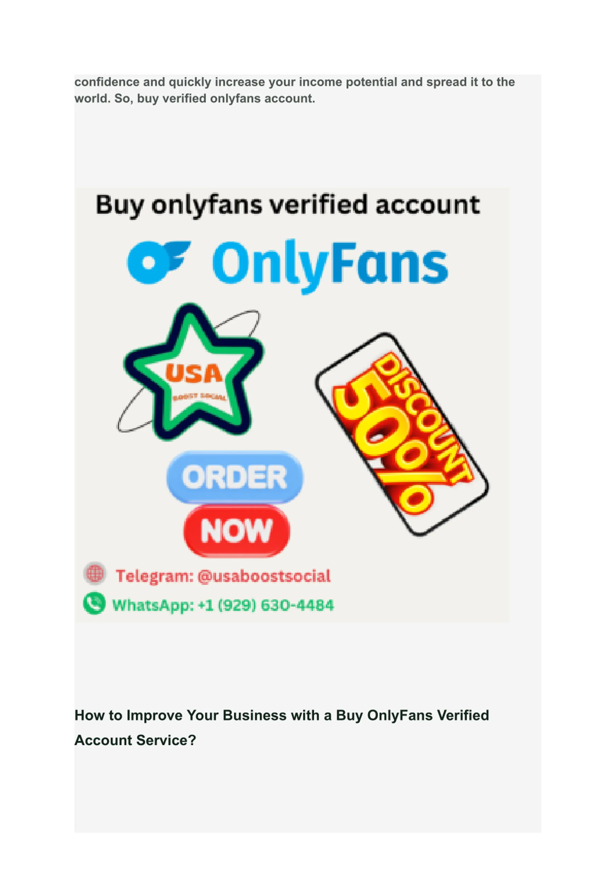 Linked email and phone number All active followers You can get feedback from influencers by providing verified people accounts for review. Easy to use, especially for home delivery. Exchange guarantee 24/7 customer support Money back guarantee Please contact 24-hour any time Email: usaboostsocial@gmail.com Telegram: @usaboostsocial Skype: usaboostsocial WhatsApp: +1 (929) 630-4484 https://usaboostsocial.com/product/buy-verified-onlyfans-creator-account/ Importance of Buy Verified OnlyFans Creator Account for Any Online Business In today s online world, having an account on one of these platforms can be a big step for you. It saves time and gives you a huge advantage. Buy verified onlyfans creator account to it, you can take on a huge career. When you buy verified onlyfans creator account theater, you get a ready-to-use account without the hassle of creating a job yourself. This is considered a very important thing for your business. Buy verified onlyfans creator account for instant expertise. And this account builds trust with your followers and potential customers. And by subscribing to all of them, you go through the long verification process and get motivated to create content. Your visibility will increase. Buy verified onlyfans creator account can attract followers and fans, which can help you grow faster. If you use such accounts, you will be considered a professional. It establishes a strong foundation for building a brand and a loyal audience. For many businesses, having a buy verified onlyfans creator account can make a huge difference in reaching your goals.
