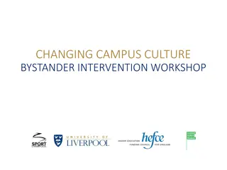 Learn about the role of a bystander in sensitive situations, including types of bystanders and how to intervene effectively. Explore scenarios and factors affecting intervention and non-intervention, emphasizing the importance of noticing, interpreting, feeling responsible, and possessing necessary skills to act.
